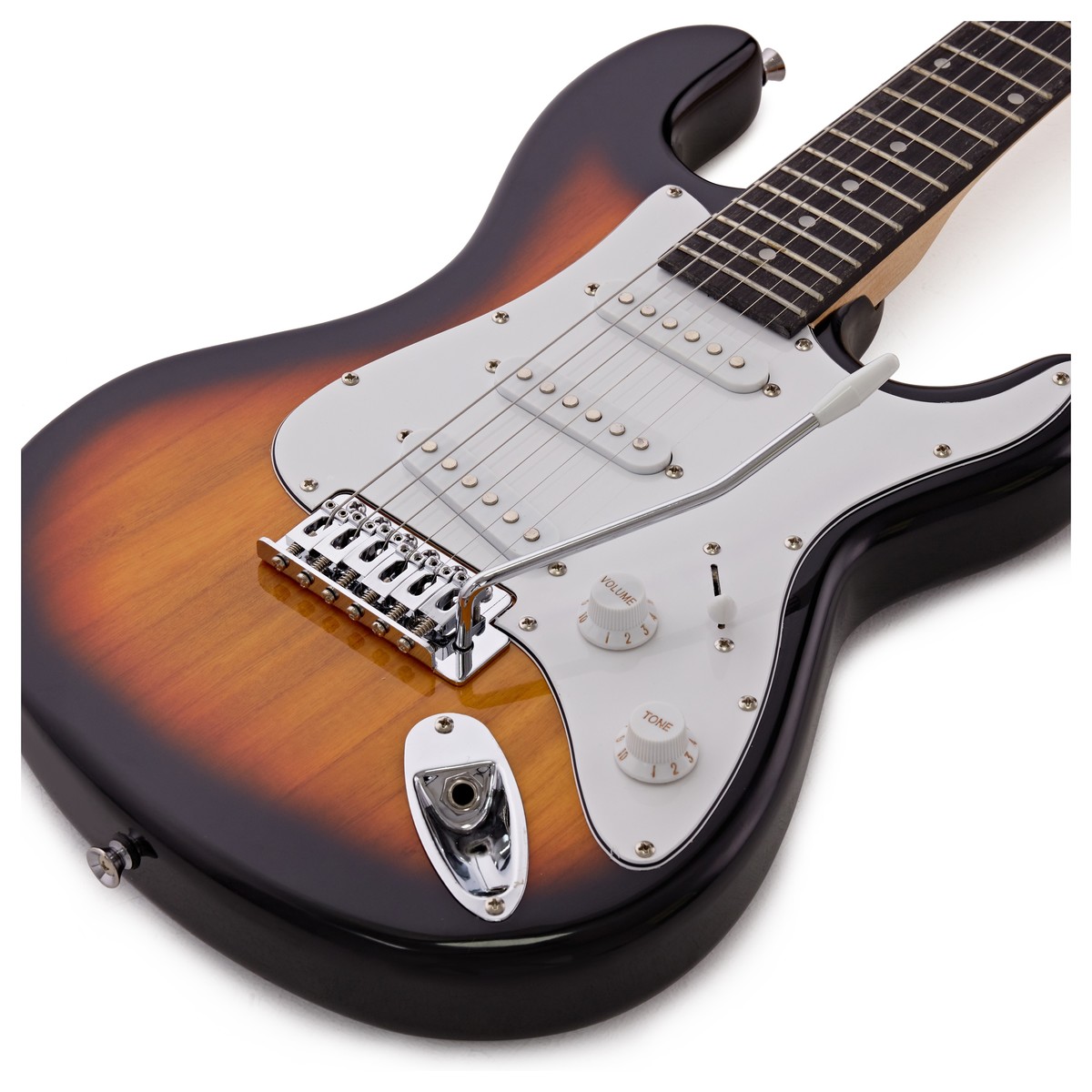 3/4 LA elgitarr från Gear4Music – nerskalad kvalitativ hårdvara Denna modell är en mindre version av vår populära Los Angeles-elgitarr; 3/4 LA-gitarrens solid kropp lönnhals poppellaminat greppbräda krom delar och hårdvara och vintage svajstall gör 3/4 LA-elgitarren ett väl utformat instrument som kan tas på allvar. Kroppen på 3/4 LA-elgitarren är gjord av paulownia trä; ett särskilt lätta trä som hjälper våra gitarrer ge full ton medan de ända förblir förvånansvärt lätta och bekväma. De tre enkel spole pickuperna med omvänt lindad mellanpickup och omkopplare innebär att denna gitarr kommer att producera ett brett utbud av ljud för att matcha kraven i många olika spelstilar vilket gör instrumentet utmärkt för utvecklande gitarrister. Gear4music 3/4 LA gitarr har utmärkt byggkvalitet och en uppmärksamhet på detaljer som är särskilt imponerande för ett instrument i denna prisklass. Den högkvalitativa sunburst ytan ger denna gitarr en klassisk stil och snyggt utseende . Du kan vara intresserad av Om du också behöver en förstärkare du kan vara intresserad av 3/4 LA elgitarr-förstärkarpaket. Recensioner Denna gitarr har fått 4 av 5 av Music Radar – en ledande online-publicering för musiker. ”Med ett massivt utbud av ljud och ett bra pris och att starta upp detta är en prisvärd yxa för yngre spelare i ditt liv.””Fem-vägs pickup omkopplaren ger fantastisk tonala variation. Med tone kontroller tillåter det dig att spela i bara om någon genre av musik. ””Väl utrustade Band… är säker på att lära sig grunderna av böjar diabilder och hammer-ons en behaglig och tillfredsställande upplevelse.” Funktioner & specifikationer Modell: 3/4 LA-elgitarr Delar: Koreanska Konstruktion: påskruvad Kropp: Lind Plektrumskydd: Vit 3-Ply Hals: Lönn Greppbräda: Poppellaminat med prickade positionsinlägg Gitarruvud: Formgjuten krom Svajstall: Standard 6-punkt vintage (inkluderar löstagbar svajarm) Hårdvara: Krom Mickar: 3 x enkel-spole (Mellanpickup omvänt lindad) Kontrollknappar: 1 x volym 1 x ton 5-vägs pickupomkopplare Skala: Trekvarts storlek 610mm / 22 band Yta: Sunburst Medföljande tillbehör Insexnycklar Gitarrkabel Gear4music – en revolution i konkurrenskraftiga priser musikinstrument och utrustning av hög kvalitet. Gear4music har slagit sig ihop med några av de bästa tillverkarna från hela världen för att utveckla vår egen linje av musikutrustning . Vårt mål är att förse våra kunder med ett brett utbud passligt prissatta musikinstrument av hög kvalitet Med vår många års erfarenhet har vi utvecklat ett brett utbud instrument och utrustning inklusive trumset akustiska och elgitarrer träblås- mässing- och stränginstrument samt högtalarsystem. Vi är stolta över att kunna erbjuda detta till våra kunder tillsammans med hundratals andra kända märken. I ett nära samarbete med våra noggrant utvalda tillverkare strävar vi efter att producera tillförlitliga instrument med ett perfekt sound till ett pris som är tillgängligt för alla. Vår musikutrustning tillverkas enligt samma höga krav som du förväntar dig av andra ansedda tillverkare – detta stärks av vår standard 30 dagars ”öppet köp” garanti. Gear4musics produkter tillverkas på ett etiskt och ansvarsfullt sätt för att uppfylla förväntningarna av en omtänksam värld.