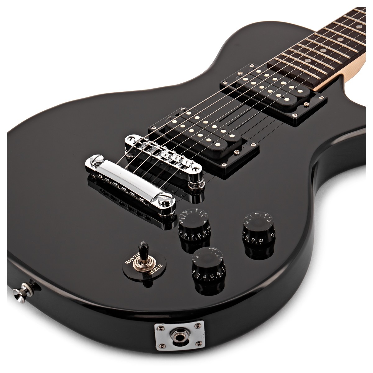 New Jersey Classic-elgitarren av Gear4Music i 3/4-storlek erbjuder dig varenda fantastiska rockton som den traditionella modellen men i en storlek som är mer lämplig för yngre gitarrister och vuxna med mindre räckvidd. Dess påskruvade lönnhals innebär att Gear4music New Jersey II erbjuder både en mer fulländad resonans och en ljusare ton i en fantastisk gitarr med en klassisk högblank svart finish. En gratis 1/4″ telepluggkabel och väska ingår som standard.