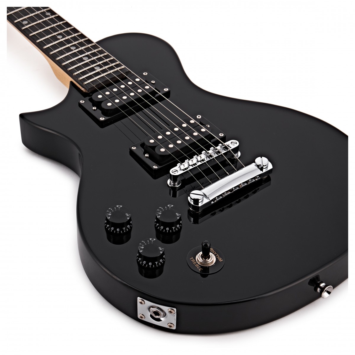 Lämplig för både vuxna och yngre gitarrister 3/4 New Jersey Classic är ett idealiskt instrument för yngre människor som vill börja lära sig gitarr men är också ett bra instrument för vuxna med en mindre räckvidd som vill utöka sin samling. Autentiska toner 3/4 New Jersey Classic Elgitarr har en klassiskt formad kropp. Paulownia-bygget betyder att du inte bara kommer att se delen ut utan att du låter den också. De dubbla humbucking-pickuperna med separata volym- och huvudtonkontroller kan producera alla autentiska toner du kan förvänta dig från fullstorlek av denna elgitarr. Den höga standarden på konstruktion och finish säkerställer att denna gitarr kommer att klara hela rockdistansen. Hållbara tonträn Utbudet av New Jersey gitarrer har hållbart trä som möter behoven i den föränderliga världen. Den uppdaterade greppbrädan täta och naturliga ådring är sammansatt av poppellaminat och ger förbättrad ton och volym. Funktioner/Specifikationer Kropp och stall: Modell: Elgitarr Ytbehandling: Glanssvart Kropp: Paulownia Stall: Tune-O-Matic Hals: Hals: Lönn Halsled: Boltad hals Greppbräda: Poplar Laminat Skala: 3/4 Storlek 609 mm / 24 tum Kontroller och hårdvara: Stämskruvar: Pressgjuten krom Hårdvara: Krom Pickuper: 2x Öppna humbucking pickuper Kontroller: 2 x volym 1 x ton 3-vägs pickupväljare Musik är för alla så vi gör det lättare för dig att börja spela. Uppbackad av vår år av yrkeserfarenhet ger Gear4music serien dig tillgång till en fantastisk samling instrument ljudutrustning och tillbehör. Producerade etiskt och ansvarsfullt passar de för alla musikintressen samtidigt som de uppfyller förväntningarna av en omtänksam värld. Det har aldrig funnits en bättre tid att börja göra musik.