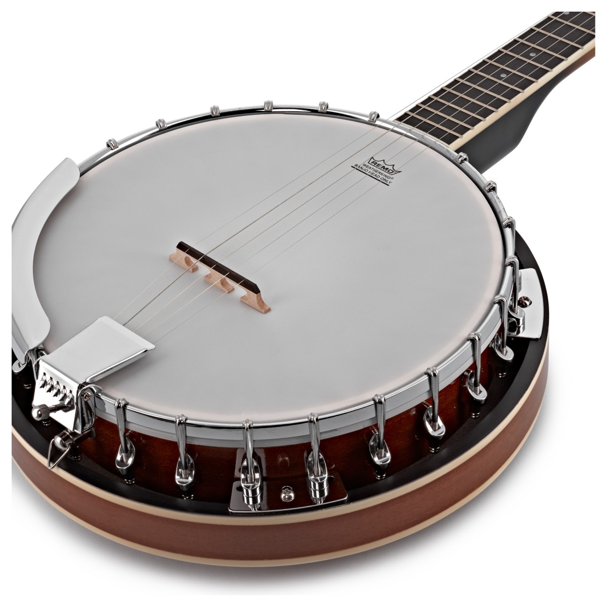 Den 5-strängade banjon av Gear4Music är en förstklassig banjo i closed-back stil med ett högt och resonant ljud perfekt för folk och country-musik. Den 5-strängade banjon omfattar en mahogny-kropp en mahogny resonator ett aluminiumskal Remo-huvud och en greppbräda i poppellaminat vilket innebär att instrumentet har ett fint ljud och låter bra. Med en bordunsträng och traditionell 5 strängs inställning är 5-strängade banjon perfekt för alla stilar av country och folk-musik. I banjopaketet finns en vadderad bärväska och stämapparat så att du har allt du behöver för att genast börja spela!