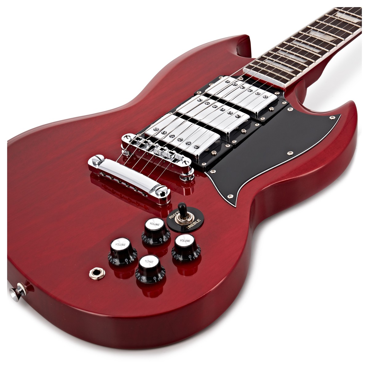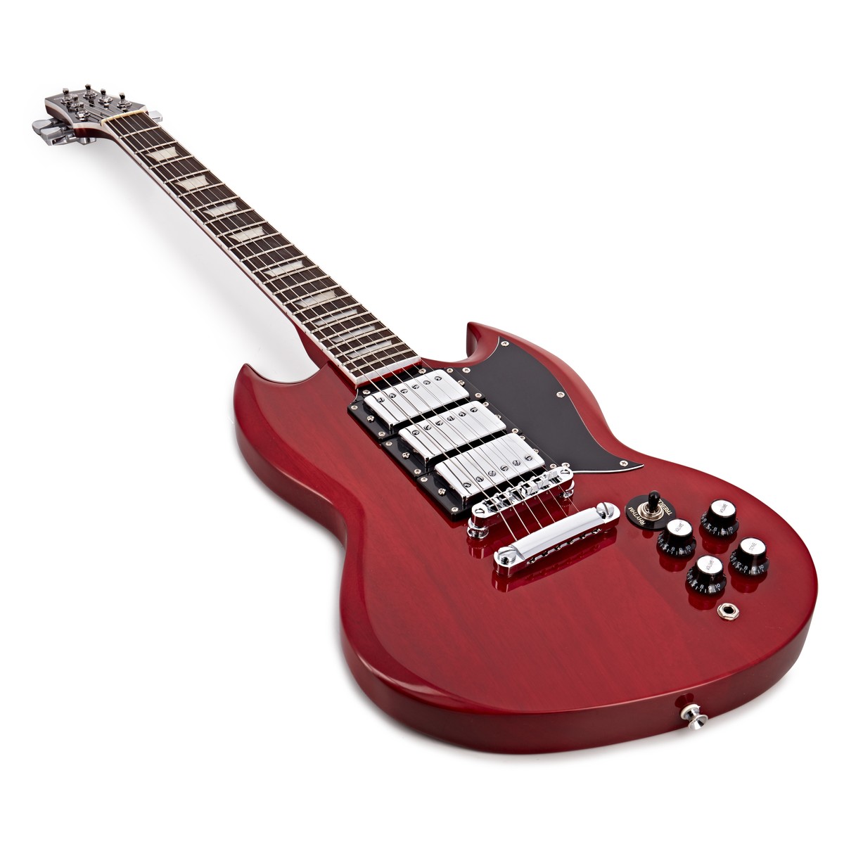 Brooklyn Select Elgitarr från Gear4music är som gjord för för rock. Det kraftfulla och omedelbart igenkännbara ljudet kommer med ett par täckta humbucking pickuper. Med en standard mahognykropp är Brooklyns naturligt organiska ton idealisk för både tunga riffs och själfulla solon medan den bekväma lönnhalsen ger en fantastisk stämningsstabilitet och en bitande närvaro i toppnoterna. Brooklyns ikoniska dubbla hornform möjliggör en oslagbar ergonomisk tillgång till de övre banden medan dess tunna form och välplacerade kontroller gör den mycket bekväm att spela. En robust väska och en kabel ingår i priset. Med en snygg glansig finish i rött är Gear4music Brooklyn en prisvärd gitarr som är redo för scenen.