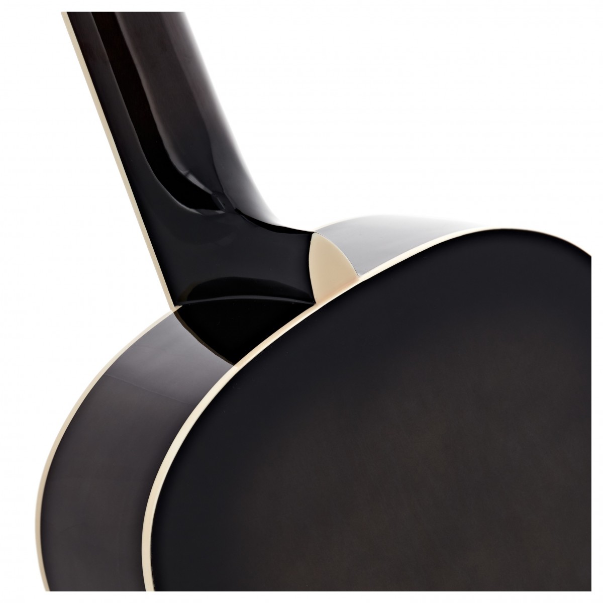 Förstärkt ljud med anpassade kontroller Deluxe Electro Classical Guitar är utrustad med en inbyggd preamp vilket ger dig full kontroll över ditt förstärkta ljud. Med justerbara kontroller för volym bas diskant mellanregister och närvaro kan du skräddarsy din ton så att den passar alla typer av framträdanden. Oavsett om du spelar på live eller spelar in kan du forma ditt ljud med precision och se till att din gitarr låter bra genom alla förstärkare eller PA-system. Bekväm design för alla spelare Denna full-size elektroklassiska gitarr är byggd för komfort och enkelhet att spela. Den traditionella kroppsformen och standardskalan gör det lätt att nå alla Band vilket ger smidiga övergångar mellan ackord och melodier. Oavsett om du övar hemma eller uppträder på scen hjälper den ergonomiska designen dig att spela bekvämt under längre perioder. Mjuka nylonsträngar för enkelt spel Deluxe Electro Classical Guitar har nylonsträngar perfekt för både nya spelare och klassiska musiker. Nylonsträngar är mjukare mot fingrarna jämfört med stålsträngar vilket ger en mer förlåtande känsla och en varm mjuk ton. Det gör det lättare att öva längre och fokusera på att förbättra tekniken utan att känna obehag. Slitstark och mångsidig för vardagsbruk Den här elektroklassiska gitarren är tillverkad med en robust laminatkropp och är utformad för att klara regelbunden användning oavsett om du övar spelar eller spelar in. Den pålitliga konstruktionen säkerställer att gitarren håller för upprepat spelande och med sina elektroakustiska egenskaper är den redo att spela var du än befinner dig. Perfekt för nybörjare och avancerade spelare Deluxe Electro Classical Guitar är idealisk för spelare på alla nivåer. Dess full-size -design och nylonsträngar är perfekta för nybörjare och ger en bekväm och enkel spelupplevelse. Samtidigt ger den inbyggda förförstärkaren mer erfarna spelare möjlighet att koppla in sig och experimentera med sitt ljud. Oavsett om du övar hemma eller uppträder på scen har den här gitarren allt du behöver för att fortsätta utvecklas. Specifikationer Stomme & Steg Ytbehandling: Trans Black Burst Kroppsstorlek: Full enkel Cutaway Tontyp: Gran plywood Baksida & sidor: Lind Plywood Fingerbräda: Techwood Bindning: Vit ABS Hals Trä: Okoume Antal Band: 18 Sadel: Vit ABS Elektronik Reglage: Bas Middle Diskant Presence Volym Strömförsörjning: 9 V-batteri (ingår ej) Display: LED-indikator för svagt batteri Mått och dimensioner Total längd: 980 mm Total bredd: 376 mm Övre del: 285 mm Nedre anslagsrör: 376 mm Midja: 247 mm Skalalängd: 255″ / 653 mm Sadelbredd: 51 mm Musik är för alla så vi gör det enklare för dig att börja spela. Med stöd av vår mångåriga yrkeserfarenhet ger Gear4music dig tillgång till en fantastisk samling instrument ljudutrustning och tillbehör. De är tillverkade på ett etiskt och ansvarsfullt sätt och passar alla musikaliska intressen samtidigt som de uppfyller förväntningarna från en omtänksam värld. Det har aldrig funnits en bättre tid att börja göra musik.