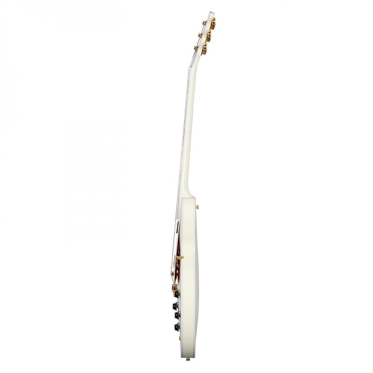 Autentisk vintage design Epiphone 1959 ES-355 Inspired by Gibson Custom replikerar minutiöst den ursprungliga estetiken hos 1959 års modell som har varit en symbol för sofistikerad och avancerad hantverkskunskap. Från den distinkta Gibson-stilens ”öppna bok” huvuddocka prydd med pärlemorinläggningar till den lyxiga 7-lagers toppbindningen och 3-lagers bakbindningen har varje aspekt utformats för att framkalla andan från vintage eran. Den här gitarren ser inte bara fantastisk ut utan fungerar också som en bro som förbinder moderna spelare med elgitarrens guldålder. Överlägsen ljudkvalitet 1959 års ES-355 är utrustad med ett par Gibson Custombucker-pickuper och levererar ett ljud som är både fylligt och mångsidigt. Dessa pickuper som är kända för sin autentiska replikering av vintage toner ger ett varmt djupt ljud med förmågan att artikulera nyanserade musikaliska uttryck. Gitarren är handkopplad med CTS-potentiometrar och Mallory-kondensatorer och erbjuder en responsiv och dynamisk tonkontroll vilket gör den lämplig för ett brett spektrum av musikaliska genrer från jazz till rock. Förbättrad spelbarhet Halsprofilen Rounded Medium C från 50-talet och den släta greppbrädan Ebenholts förbättrar spelbarheten hos Epiphone 1959 ES-355 vilket gör den bekväm för både ackordspel och intrikat lead-arbete. Skallängden på 2475 tum är idealisk för spelare som vill ha lite kortare avstånd mellan banden vilket gör det lättare att böja och spela snabbare. Dessutom ger medium jumbo -banden en tydlig notdefinition och enkel action vilket gör det lätt att anpassa sig till olika spelstilar. Pålitlig och hållbar konstruktion Den halvhålade kroppen på Epiphone 1959 ES-355 är konstruerad med ett 5-lagers lager av lönn/poppel vilket ger en robust men ändå resonant ram som står emot tidens tand. Centrumblocket i solid lönn är en viktig detalj som förbättrar gitarrens sustain samtidigt som det dramatiskt minskar risken för feedback vilket gör den mycket pålitlig för live framträdanden. Högkvalitativ hårdvara som Grover Rotomatic-stämskruvar och en Gibson Historic Reissue aluminium stop bar Stränghållare säkerställer att gitarren förblir stämd och presterar konsekvent under olika förhållanden. Specifikationer Produktnamn: Epiphone 1959 ES-355 Inspirerad av Gibson Custom Produktkod: EC35559CWVGH1 Kropp Kroppsform: ES-355 Material i kroppen: 5-lagers skiktad lönn/poppel Bracing: Gran Mittblock: Lönn Bindning: 7-lagers topp 3-lagers bakstycke 5-lagers topplock 1-lagers greppbräda Finish på kropp: VOS (Vintage Original Sheen) polyuretan Hals & greppbräda Profil: 50-tals rundad medium C Skalans längd: 62865 mm / 2475 in Material greppbräda: Ebenholts Radie på greppbräda: 3048 mm / 12 in Halsens material: Mahogny i ett stycke Fret-antal: 22 Bandar: Medium Jumbo Material Sadel: Graph Tech Sadelbredd: 430 mm / 1692 in Bredd islutet av brädan: 5688 mm / 2239 in Inlägg: Moder av Pearl Block Skarv: Inlimmad satt hals; lång tenon Hårdvara & elektronik Ytbehandling: Gold Steg: Tune-O-Matic Stänkstycke: Gibson Historic Reissue Aluminium Stop Bar Stämskruvar: Grover Rotomatic Plektrumskydd: 5-lagers Bound Celluloid Tortoise; Lång Dragstång: Dual Action Stångkåpa: 2-lagers svart klocka; bred vit Kontrollrattar: Svart Top Hat med Nickel Dial Pointer Tips på strömbrytare: Amber Remknappar: 2 – botten och baksida av hälen Monteringsringar: Svart Pickup-överdrag: Gold Hals Pickup: Gibson Custombucker Pickup för stalln: Gibson Custombucker Reglage: 2 volym 2 ton; handkopplade med CTS-potentiometrar och Mallory-kondensatorer Väljare för pickup: 3-vägs Switchcraft Utgångsjack: 1/4″ Switchcraft Strängar Gauge:.010 .013 .017 .026 .036 .046 Fodral: Brunt hårdskal med rosa interiör Gold hårdvara och inspirerad av Gibson Custom Logo
