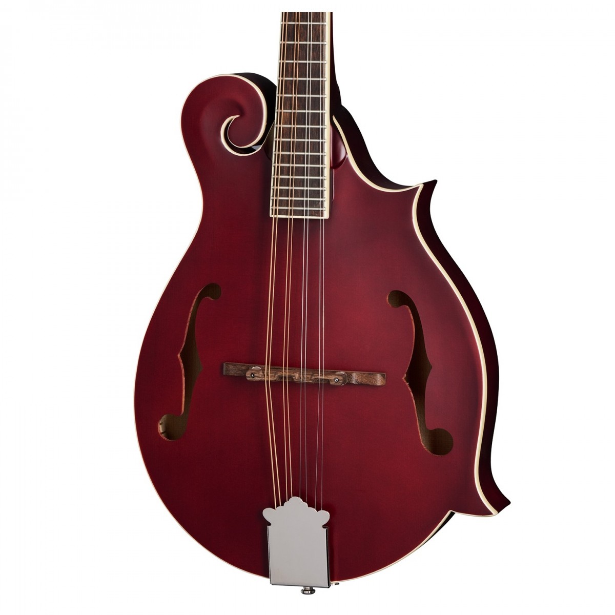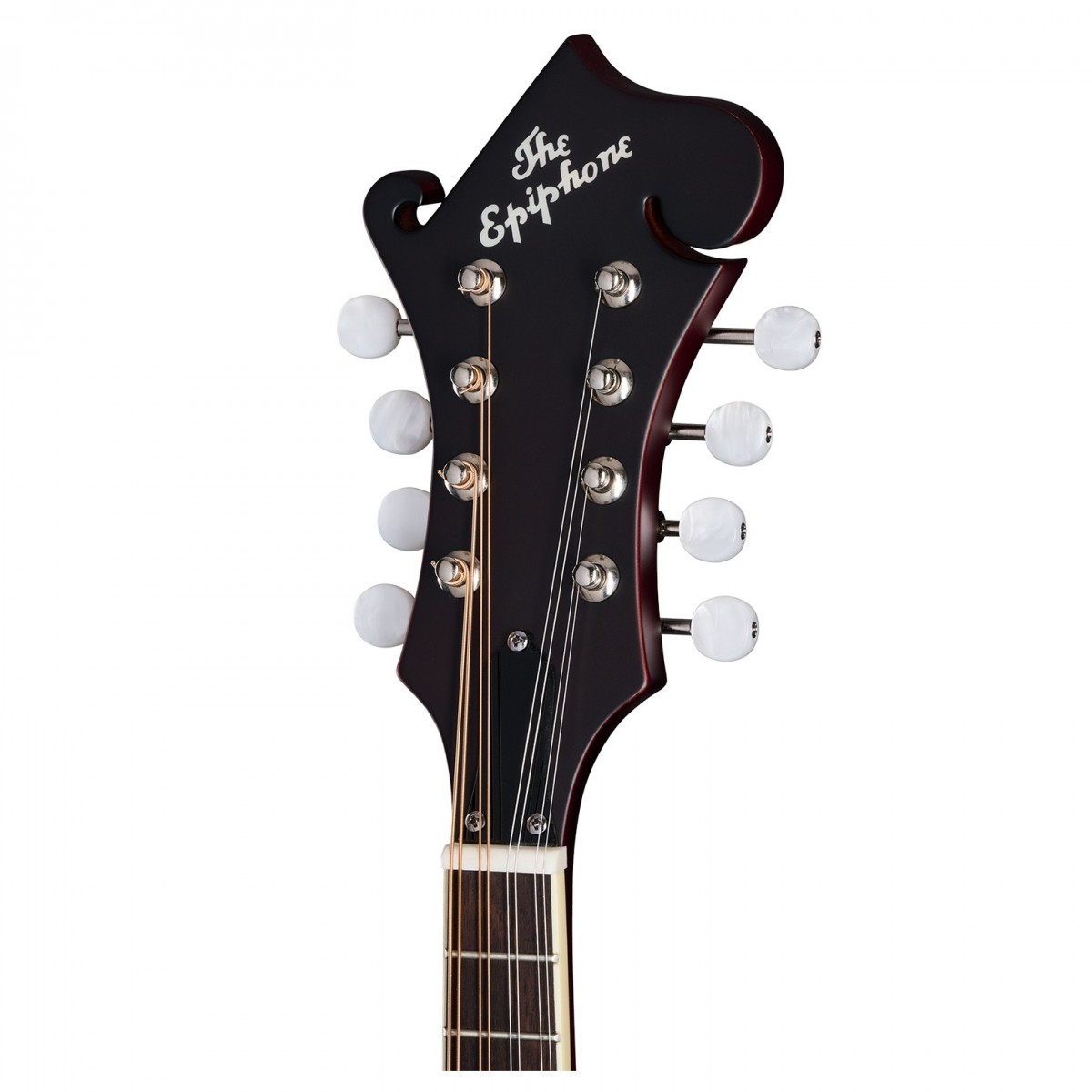 Epiphone F-5 Studio Inspired by Gibson är en omsorgsfullt tillverkad mandolin som hedrar det rika arvet från Orville Gibson och Lloyd Loar. Med en konstruktion helt i massivt trä med en kropp i massiv lönn och en topp i massiv Sitka-gran ger denna mandolin överlägsen resonans och ett balanserat tonrikt ljud. Lönnhalsen som är fäst med en limmad dovetail-skarv och greppbrädan i laurel med 20 band ger en bekväm och smidig spelupplevelse. Dess Sidenmattfinish förhöjer både dess estetiska tilltal och tonala projektion.Denna mandolin har autentiska designelement i Gibson F-5-stil inklusive en scroll-stolpe och stämskruvar i vintagestil med pärlloidknappar. Nickelhårdvaran och det traditionella stämplade bakstycket bidrar till dess klassiska utseende och funktionalitet. För extra bekvämlighet och skydd levereras Epiphone F-5 Studio med en premium väska vilket gör den till ett utmärkt val för musiker som söker en högkvalitativ mandolin med tidlös design och exceptionellt ljud.