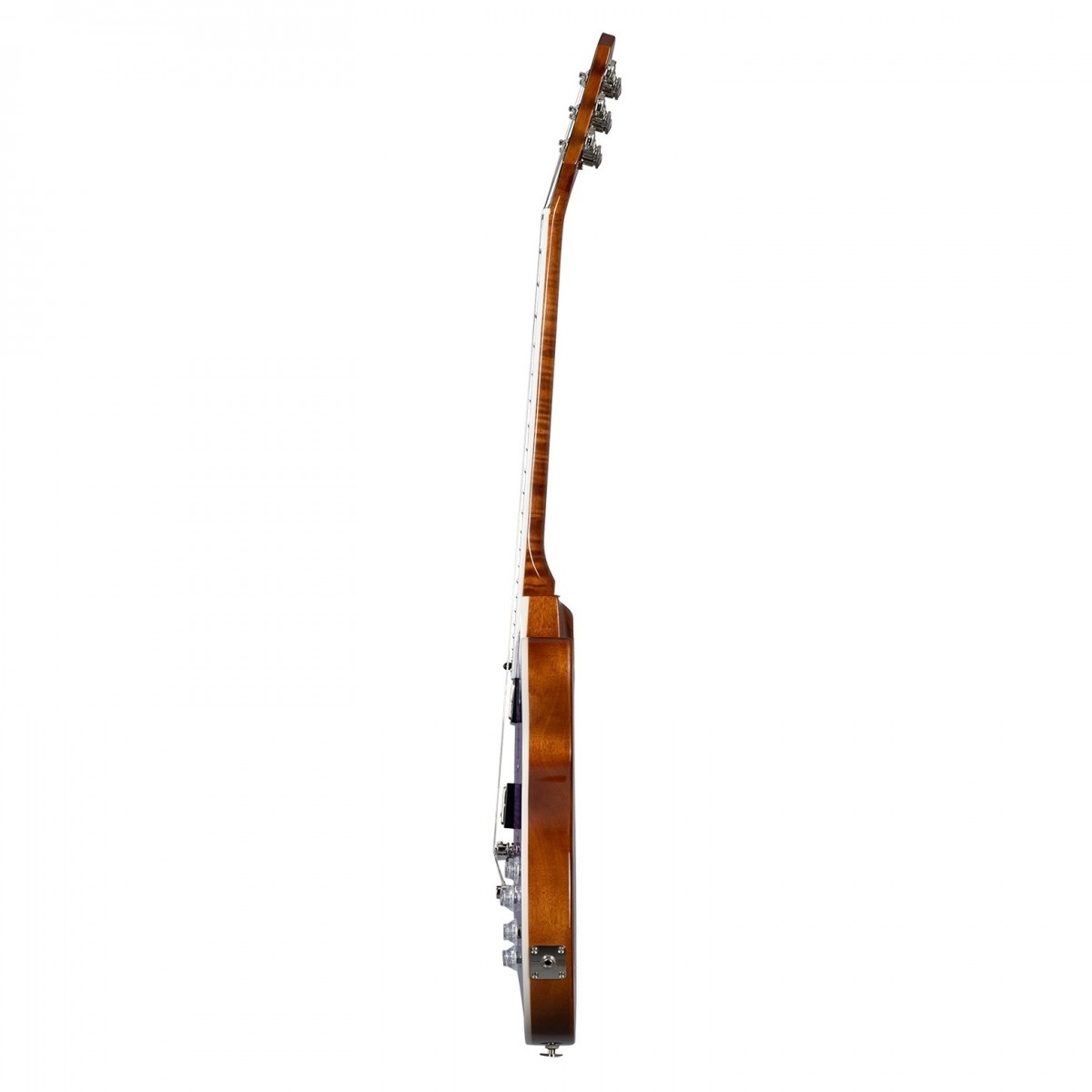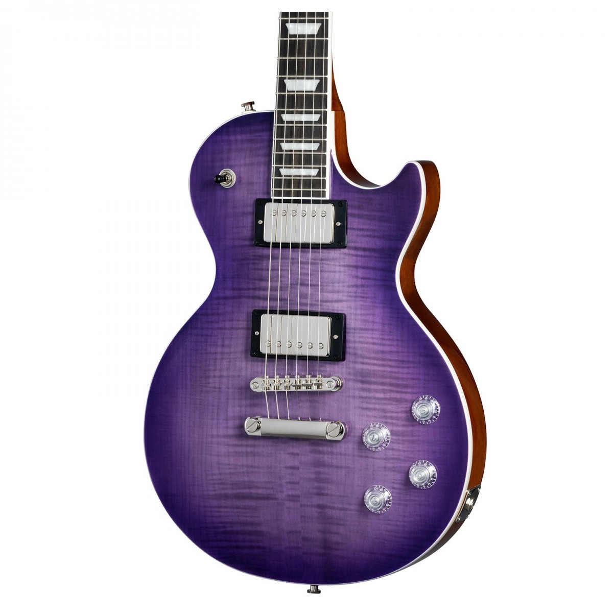 Epiphone Les Paul Modern Figured är en fantastisk uppdatering av en klassisk design med en viktavlastad mahognykropp och ett lock i lönn med en iögonfallande AAA-furnérad lönnfanér. Med en vacker Purple Burst finish kombinerar den här gitarren vintage estetik med modern spelbarhet. Den asymmetriska SlimTaper mahognyhalsen i kombination med en Ebenholts greppbräda och en modern konturerad häl ger en bekväm och smidig spelupplevelse perfekt för både rytm- och leadgitarrister.Les Paul Modern Figured är utrustad med ProBucker 2- och 3-pickuper och erbjuder ett mångsidigt utbud av toner med möjlighet till coil-splitting och fasväxling. Treble bleed-kretsen bibehåller klarheten även vid lägre volymer medan Grover låsbara Rotomatic-stämskruvar och en Graph Tech -Sadel ger överlägsen stämningsstabilitet. Paketet kompletteras med en premium väska som ser till att din gitarr är skyddad när du är på språng. Detta instrument är utformat för att uppfylla behoven hos contemporary musiker och erbjuder både exceptionell prestanda och ett slående utseende.