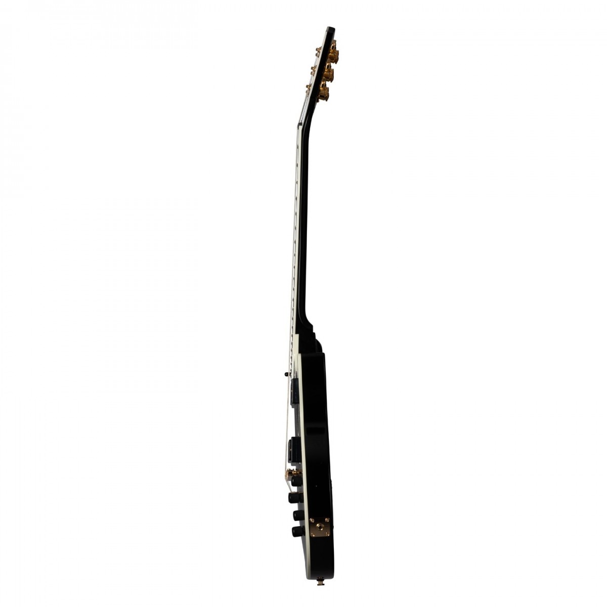 Specifikationer Produktnamn: Epiphone Matt Heafy Origins Les Paul Custom Ebenholts Produktkod: EILCMKH6EBGH3 Kropp Stil: Les Paul Överst: Lönn Viktavlastning: Modernt Bindning: 7-lagers topp 5-lagers huvudstock enkellagers greppbräda Material: Mahogny Finish: Glans Hals & Greppbräda Profil: Smal Greppbrädematerial: Ebenholts Skallängd: 62865 Greppbrädans radie: 3048 Sadelmaterial: Graph Tech Sadelbredd: 430 Antal band: 22 Bandstorlek: Medium Jumbo Positionsinlägg: Anpassade block Halsled: Inlimmad ansatt hals modern konturerad häl Hårdvara Finish: Guld Stall: Epiphone LockTone Tune-O-Matic Bakstycke: Epiphone LockTone Stop Bar Stämskruvar: Grover Locking Rotomatic med tulpanknappar Dragstång: 2-vägs justerbar Dragstångskydd: 2-lagers Bell; ”Les Paul MKH Origins Custom” Kontrollknappar: svart räfflade metall Switch Tips: Svart Domkraft: Plattöverdrag Guldpläterad metall Kontrollskydd: Svart med batterifack Remknappar: 2 – Gold PosiLock Mått: .010 .013 .017 .026 .036 .046 Elektronik Halspickup: Fishman MKH Fluence Alnico Stallpickup: Fishman MKH Fluence Ceramic Kontroller: 2 volym (skjut/drag spole delas); 2 Tone (tryck/drag Humbucker Pickup Voicing) Pickupväljare: 3-vägs Epiphone Toggle Uttag: 1/4 tum Epiphone Heavy Duty Diverse Fodral medföljer: Custom Hardshell-fodral ingår