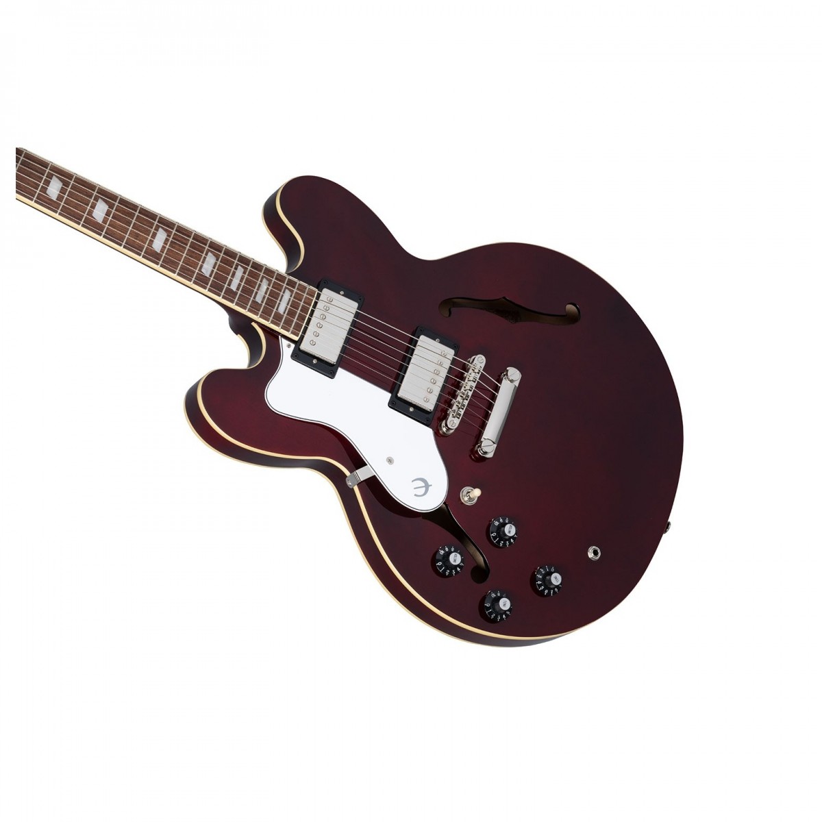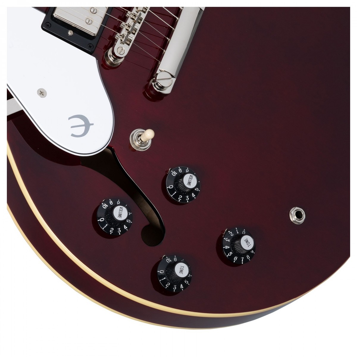 Epiphone Noel Gallagher Riviera Vänsterhänt är en trogen återskapelse av Oasis-mannens favoritgitarr. Med en historiskt korrekt design och ljud i stil med vintage är den det perfekta instrumentet för alla som letar efter det klassiska utseendet och ljudet. Och allt börjar med Epiphones noggrant avstämda Alnico Classic Pro humbuckers. Dessa har noggrant röstats för att efterlikna 80-talets Rivieras och har därför en autentisk slagkraftighet och värme i båda positionerna. När det gäller utseendet kan den misstas för originalet! Färgen och formen har anpassats till Noels personliga Riviera och ytterligare detaljer bidrar bara till autenticiteten. Exakta ”E”-detaljer på dragstångöverdraget och plektrumskydd en smal hals med volute ger en äkta känsla och vibe medan bruna F-formade ljudhål kompletterar den ikoniska bilden. Om du gillar retrostil och spännande lättspelade instrument så finns det inte mycket bättre än denna Noel Gallagher signature special – skaffa din idag!