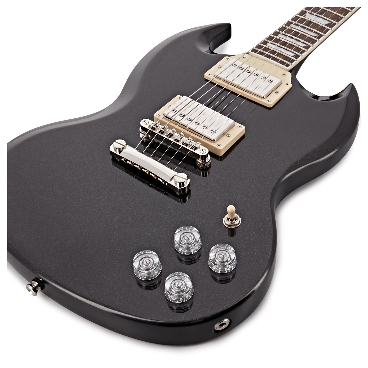 Strålande stil. Skränigt ljud. Och redo för rock n roll. Epiphone SG Muse bringar kraften hos den klassiska SG till en rad gitarrer med fantastiska nya metalliknande ytbehandlingar. Gitarren har ett par high-output alnico Classic PRO humbucker-mickar. Du kan verkligen skruva upp volymen med dessa fina mickar till ditt förfogande – nu kommer ditt ljud alltid att sticka ut ur mängden i din mix. Och det är bara början. Du får en underbar naturlig enkel spelupplevelse – den ”C” -formade halsen ger maximal bekvämlighet och gör det enkelt att slå även de hårdaste tonerna och ackorden. Du får till och med Epiphones fantastiska treble bleed-krets. Detta upprätthåller din gitarrs tydliga ljud även när du spelar på låga volymnivåer. Så detta är bra för övningar sent på kvällen. Det är faktiskt bra för alltsamman.