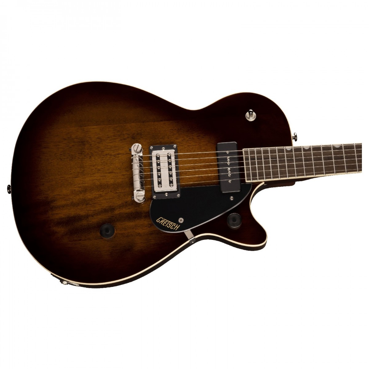 Gretsch G2215-P90 Streamliner Junior Jet Club är utformad för att klara av oändligt spelande. Det är en gitarr som matchar din passion och energi. Så släpp lös kraftfull och grym prestanda utan behöva vara orolig för din gitarrs säkerhet. Med denna gitarr får du en verkligt uppslukande spelupplevelse varje gång du kliver upp på scenen. Den kraftfulla kombinationen av en StalladTron Stall pickup och en P90 Soap Bar pickup tar dig till nya ljudhöjder. Filtrera bort hummande ljud och utforska pickuper som levererar en oöverträffad ton med fullspektrum trohet. Du får en läcker unik ton packad med tjocka mellantoner unik tonal charm och det klassiska dånet av rock n roll. Och tack vare en intuitiv design låter Streamliner dig ta fullständig kontroll över din ton. Den är också otroligt bekväm att spela med en tunn U-profil som gör spelbarheten väldigt enkel. Den är smidig fartfylld och imponerande att titta på. Det är dags att göra din nästa show rättvisa…