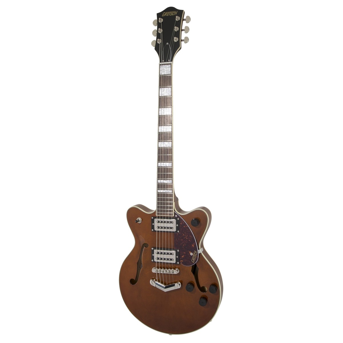 Specifikationer Kropp Modellnamn: Gretsch G2655 Streamliner CB Jr Single Barrel Stain Modellkod: 2806500593 Serie: Streamliner Kroppsmaterial: Laminerad lönn Finish: Glansig Center Block: Lättviktig Gran Färg: Single Barrel Stain Övre del: 10.625 tum Nedre del: 13.375 tum Midja: 8.625 tum Hals och Greppbräda Hals Material: Nato Hals Profil: Tunn ”U” Hals Finish: Glansig Greppbräda Material: Laurel Greppbräda Radie: 12 tum Antal Band: 22 Band Storlek: Medium Jumbo Inlägg: Pearloid Big Block Skala Längd: 2475 tum Hårdvara och Elektronik Sadelmaterial: Syntetisk ben Sadelbredd: 16875 tum Stämskruvar: Gjuten Nickel Stall: Förankrad Adjusto-Matic Stränghållare: V-Stoptail Plektrumskydd: 3-Ply Sköldpadda Stall Pickup: StalladTron BT-2S (Stall) Hals Pickup: StalladTron BT-2S (Hals) Pickup Switch: 3-position växla Switching: Position 1: Stallupphämtning Position 2: Stall och Halsupphängning Position 3: Halsupphämtning Kontroller: Volym 1 (Hals Pickup ) Volym 2 (Stall Pickup) Mastervolym Master Tone Kontrollknappar: Svart Vintage-Style Hårdvara Färg: Nickel Diverse Strängar: Nickelpläterad Stål .010 – .046 Mätare