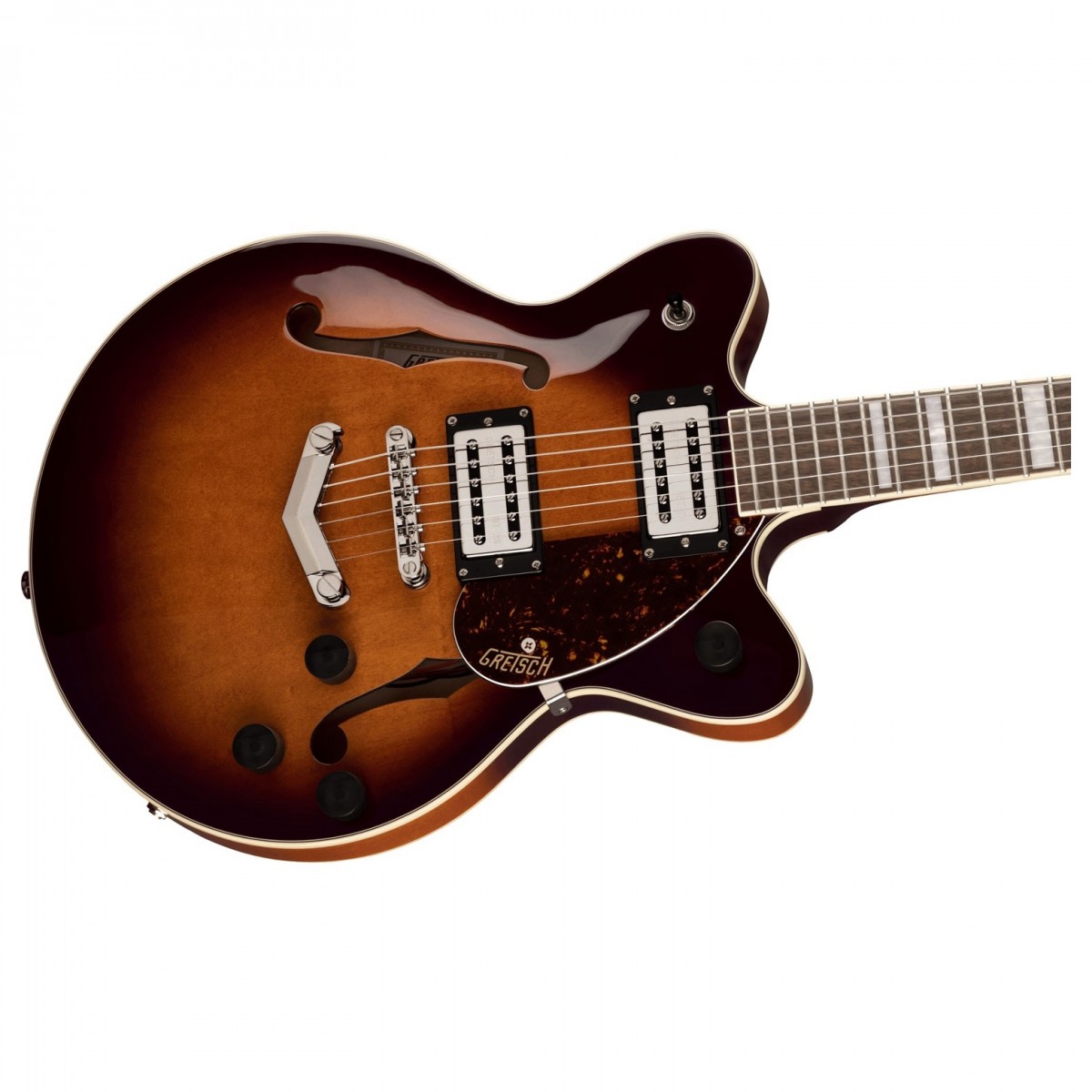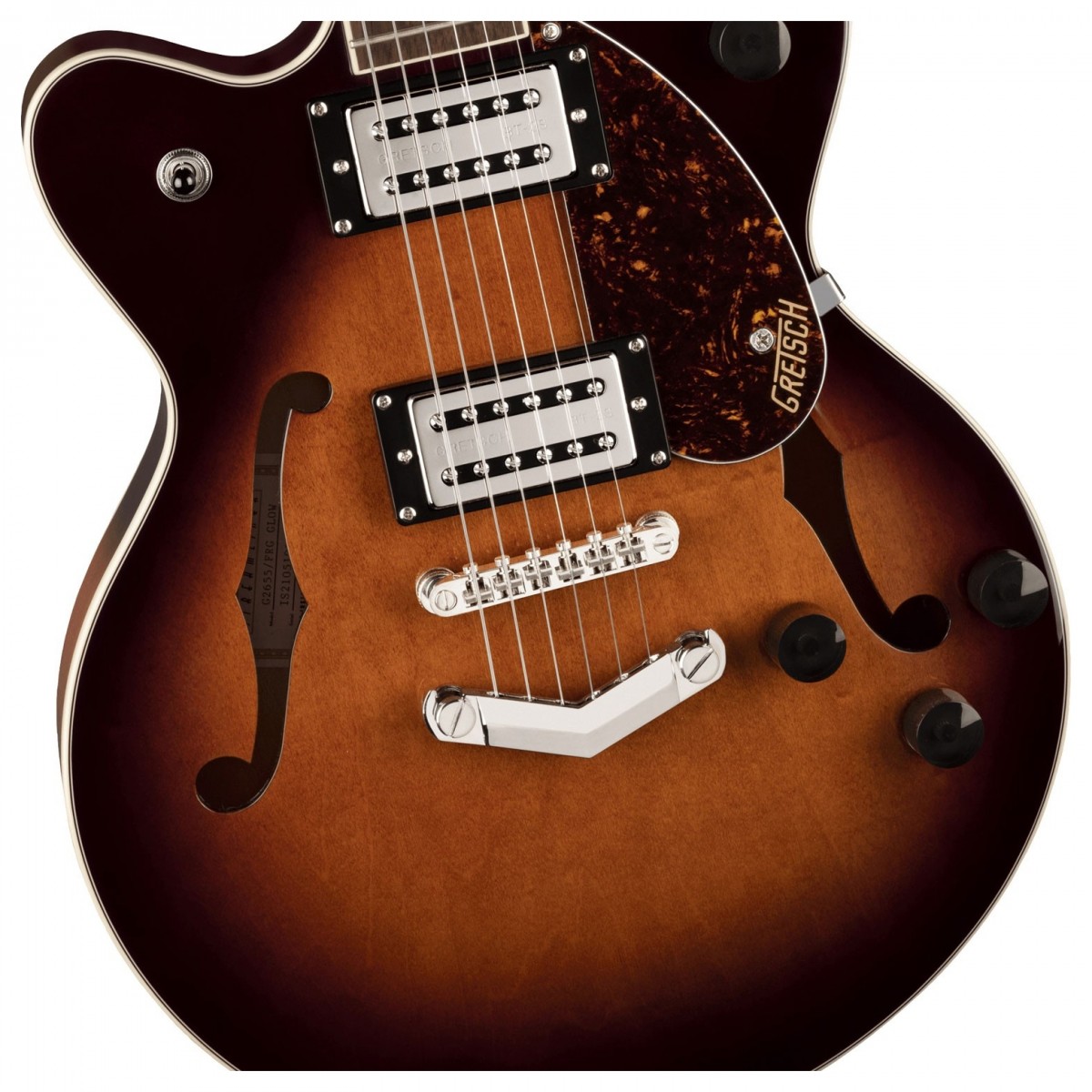 Gretsch G2655 Streamliner Center Block JR Double-Cut är designad för tre saker: enastående estetik exceptionell spelbarhet och artikulerade rika ljud. Med ett mittblock av mahogny som är ihopkopplat med dubbla StallatTron BT-2S-pickuper med hög uteffekt kommer ljuden du kommer att generera att vara rikliga i detalj och skarpt definierade. Förvänta dig robusta snäva låga glittrande höga och halsiga mellanregister som gör att G2655 kan prestera bra i en mängd genrer. Dessa kristallklara ljud backas upp av en lyckligt smidig spelbarhet som serveras av en tunn U-formad hals. Perfekt för både ackord och riff du kommer att låsa upp nya sätt att närma sig din musik på denna flexibla spelyta. Och det hela backas av Gretsch-hårdvara i toppklass för att säkerställa en stabil och konsekvent prestanda inklusive en förankrad Adjusto-Matic stall och pressgjutna stämskruvar. Ingjuta din spelelegans och oändliga musikalitet med G2655 Streamliner.