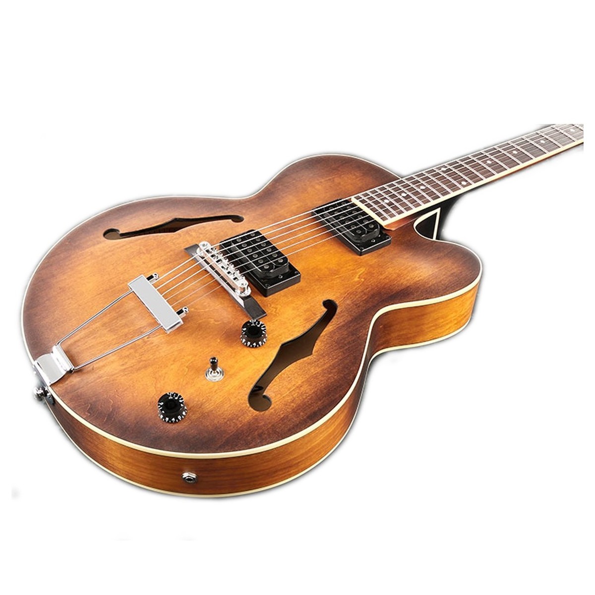 Funktioner Klassisk fantastisk ihålig design Lönnkropp med f-hål Mahognyhals med bunden greppbräda i rosenträ 20 medium band ART-ST-stall med VT06-bakstycke Infinity R humbuckers Enkel volym / tonkontroll och 3-vägs pickupväljare Specifikationer Kropp och stall Toppmaterial: Lönn Bakstycke och sargar: Lönn Konstruktion: limmad hals Stall: Fast Färg: Tobacco Flat Kroppsmått: Längd: 19 1/2 ” Bredd: 15 3/4 ” Max djup: 3 5/8 ” Hals och greppbräda Hals: Mahogni Profil: Artcore AF Greppbräda: Bundet rosenträ Inlägg: Vita prickar Band: 20 medium Greppbrädans radie: 305mm Skallängd: 628mm / 247 ” Sadelns bredd: 43mm Halstjocklek: 21 mm vid första bandet 24 mm vid nionde Hårdvara och elektronik Stall-pickup: Infinity R (H) Stall-pickup (Passiv / Keramisk) Hals-pickup: Infinity R (H) Hals-pickup (Passiv / Keramisk) Kontroller: Volym Ton 3-vägs pickupväljare Stall: ART-ST-bro med VT06-bakstycke Hårdvara: Chrome Strängar: 10-46 strängmått