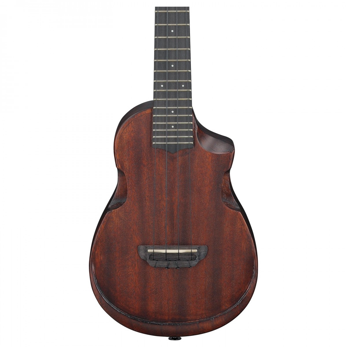 Unik design med kammad kropp Ibanez AUC14-OVL ukulele har en revolutionerande kammad kroppsdesign som skiljer den apart från traditionella modeller. Den integrerade baksidan och sidorna är snidade ur ett massivt träblock och bildar ett enda stycke som bidrar till ukulelens distinkta ton och resonans. Konstruktionsmetoden ger inte bara instrumentet ett fylligt robust ljud utan också en unik estetik som fångas av Open Pore Violin Sunburst finish. Armstöd med förhöjd komfort För musiker som ägnar timmar åt att öva eller uppträda har Ibanez AUC14-OVL ett förhöjt komfortarmstöd som förbättrar spelbarheten. Denna genomtänkta funktion förhindrar att underarmen utövar onödigt tryck på toppen av ukulelen vilket ger en bekvämare spelposition. Detta uppmuntrar till längre spelsessioner med mindre trötthet vilket är en avgörande aspekt för både spirande och erfarna ukulelespelare. Innovativt portsystem för stereoljud AUC14-OVL utmärker sig med ett innovativt Stereo Sound Port System som ger en surroundljudsupplevelse. De dubbla ljudhålen sitter på ukulelens midja och projicerar musiken i flera riktningar så att spelaren kan fördjupa sig helt i sitt framförande. Denna auditiva funktion är inte bara bra för spelaren som får en bättre ljudövervakning utan förbättrar även lyssningsupplevelsen för publiken. Dubbelhålsstall i Purpleheart Funktionalitet möter design med ukulelens Purpleheart Double Hole Stall som förenklar strängbyten och underhåll. Denna praktiska komponent gör att spelaren enkelt kan fästa nya strängar utan att behöva göra komplicerade knutar vilket gör att strängspänningen förblir korrekt och bidrar till en stabil stämning. Dess integrering i den övergripande designen visar hur AUC14-OVL förenar praktiska egenskaper med innovativt hantverk. Specifikation Kropp Lock: Sapele Baksida och sidor: Massiv Paulownia Ljudport: Stereoljudportsystem Ytbehandling: Open Pore Violin Sunburst Kroppsform: Kammad kropp (akustisk) Hals & greppbräda Material i halsen: Okoumé Material för greppbräda: Purpleheart Greppbrädans radie: 15.75″ (400mm) Antal band: 19 Inlays: Vit punkt Hårdvara Steg: Purpleheart med dubbla hål Stämskruvar: Svarta gjutna stämskruvar Strängar: Aquila® Nylblack 1A2E3C4G Tillbehör ingår: väska startguide för Ukulele Aquila-tagg manual