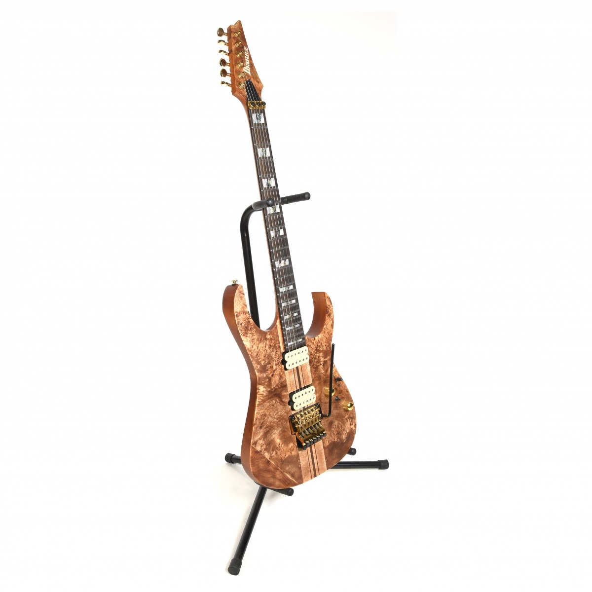 Ibanez RGT1220PB Premium är ett vackert instrument. Under dess mörka och vackra topp i poplar-burl-trä finns det gitarrhantverksmagi som laddar den med ett starkt ljud. Berömda DiMarzio pickuper i form av en Air Norton och Tone Zone fungerar som artilleri för en verkligt decimerande men ändå dynamisk ton. Du kommer att kunna växla mellan morrandet och rytandet från stallhumbuckerna och den feta mättade rösten från halspickupen. Låt de rivande riffen flyga på scenen. Glid längs banden i oklanderlig stil – du har en Wizard III-lönn/valnötshals till ditt förfogande. Denna legendariska design underlättar ultrasnabbt spelande tack vare sin tunna platta form. Band i rostfritt stål med överlägsen Premium bandkantsbehandling täcker den perfekta greppbrädan i ebenholtsträ vilket gör din ton fyllig. Den långa halsen betyder också att du har tillgång till galen sustain – låt varje ton ringa ut i sin fullaste form. Ex-Demo: Denna produkt kan vara ex-display ha mindre tecken på användning eller lätta ytliga skråmor och sakna icke-nödvändiga delar. Originallåda paketering eller manual kanske inte ingår. Varje föremål kontrolleras av vårt team av reparationstekniker för att försäkra att det möter våra höga standarder. Detta är en fantastisk möjlighet att köpa en fullt fungerande produkt till ett nedsatt pris.
