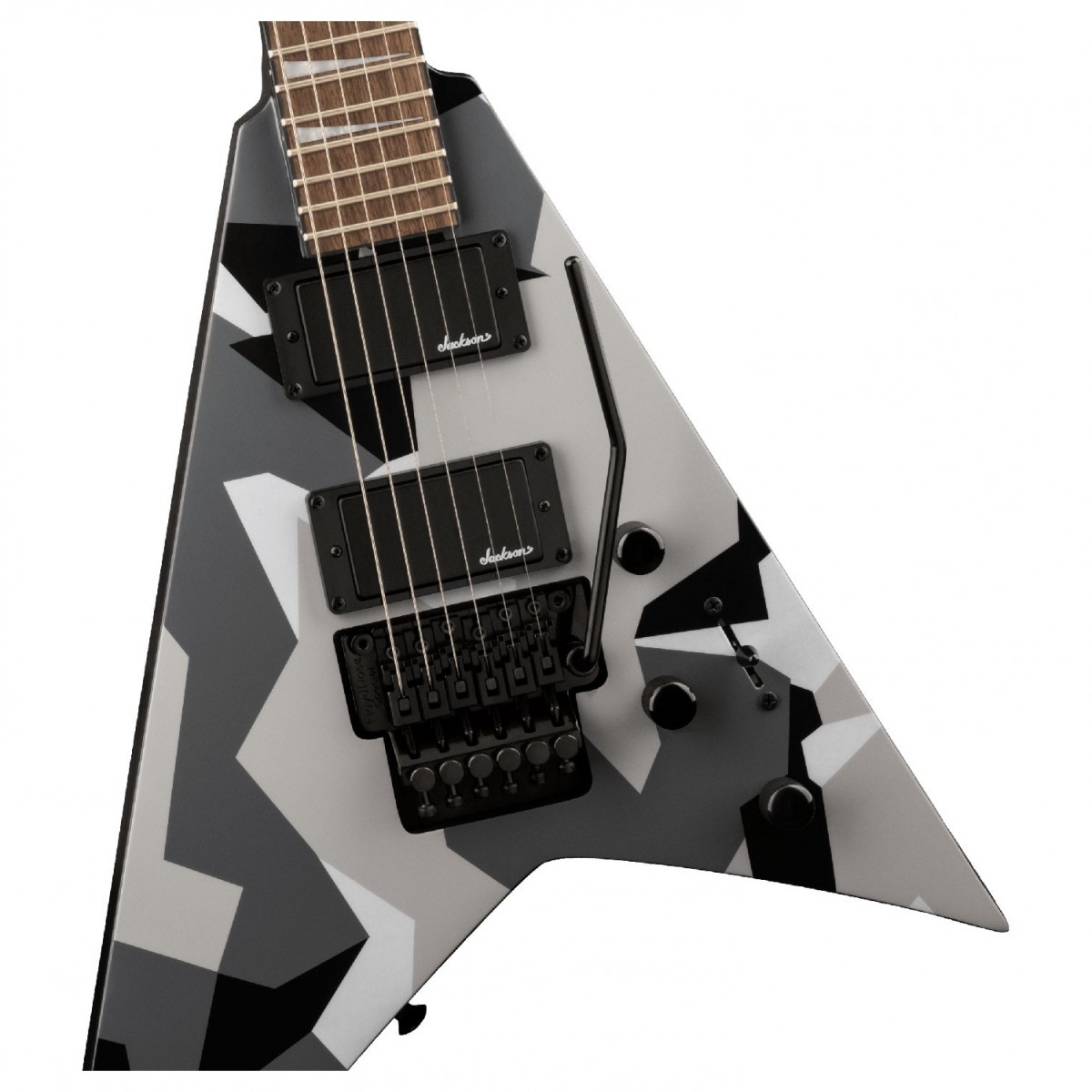 Jackson X Series Rhoads RRX24 är ett rått brutalt tonverktyg värdigt sin legendariska namne. Klädd i en smygande camo-finish och inskuren i den ikoniska kantiga hållningen är den djärv fräsch och redo att spännande. Utrustad med dual högeffekts aktiva Jackson humbuckers får du en arsenal av tonal eldkraft att befodrala. Den aktiva elektroniken tar Jackson pickuper till en annan nivå och erbjuder grym kraft och brusfri prestanda. Gör dig redo att styra scenen. Du har oefterhärmlig stil och enormt ljud. Något annat? Japp – Blixtsnabb spelbarhet. En Sidenmatt hals och en greppbräda med sammansatt radie är allt du behöver för att skicka dina riffs överljud. Det är så smidigt bekvämt och naturligt att hålla i att du omedelbart känner dig snabbare och kan dra av dig mer vågade solon. På tal om solon du kan blomstra dem med häftiga barryckningar tack vare det fantastiska Floyd Rose dubbellåsande tremolosystemet. Divebomb eller vibrato så mycket du vill denna geniala enhet låter inte din stämning glida.