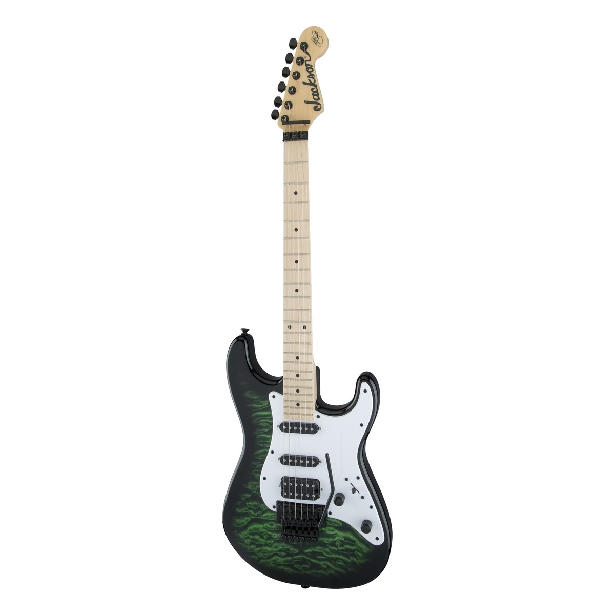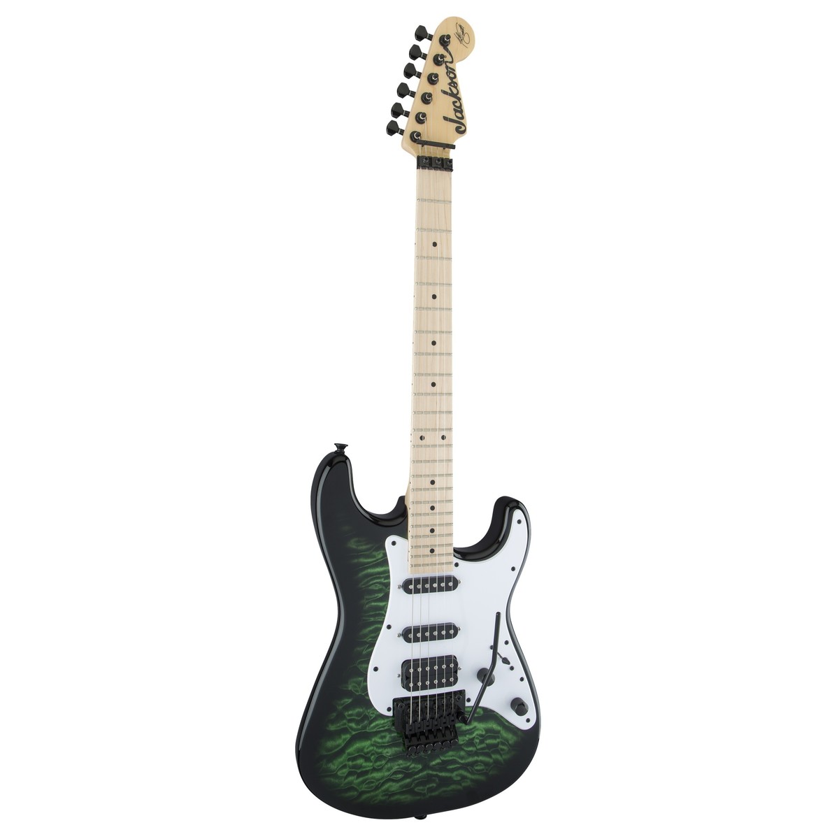 Jackson SDXQ Adrian Smith är laddad med högpresterande utrustning som låter dig släppa lös explosiva metallljud. Och inte bara det utan det kommer att hjälpa dig att sticka ut på scenen också tack vare den vackra quiltade lönnöverdelen och den genomskinliga gröna finishen! Men om publiken inte blir häpnadsväckande av utseendet kommer de att bli hänförda av de brännande ljud som SDXQ producerar. En trio av Jackson -stämda pickuper genererar den aggressiva högoktaniga dynamik som Smith är känd för och i en HSS-layout har du massor av mångsidighet till ditt kommando. Och dessa häftiga toner kommer att förstärkas av den all-action tvåpunkts tremolo-stallet med en låsSadel som låter dig släppa lös vilda whammy bar-upptåg. Inte bara det men det kommer också att ge en stensäker stämningsstabilitet för de energirika riffs och framföranden som är Adrians varumärke. Om du behöver en gitarr för att spegla din inre heavy metal-virtuos då är Jackson SDXQ Adrian Smith signature det.