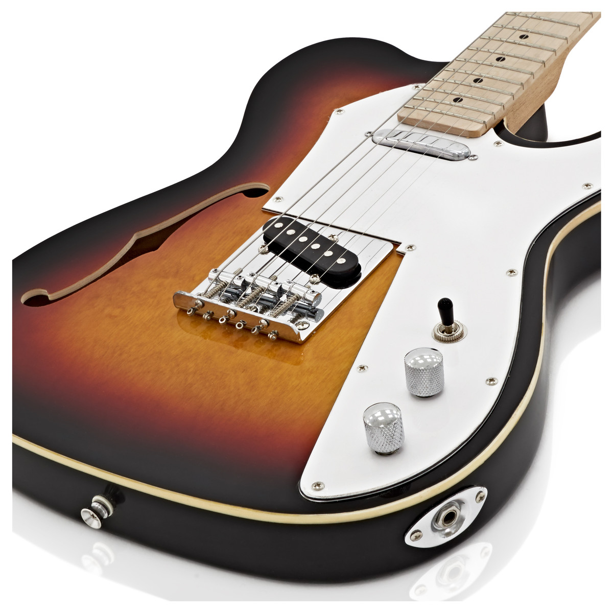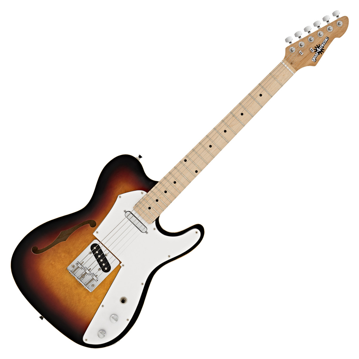 Detta är en ny gitarr i Gear4musics elgitarrserie. Knoxville semi-hollow elgitarren från Gear4music med sin Sunburst finish har en unik vintage-ton och stil. Denna gitarr har inspirerats av en klassisk F-hole design och erbjuder professionella funktioner och högkvalitativa tonträ till ett överkomligt pris. Gitarren har en attraktiv finish och gör det lätt för dig att skapa en mängd klassiska ljud.