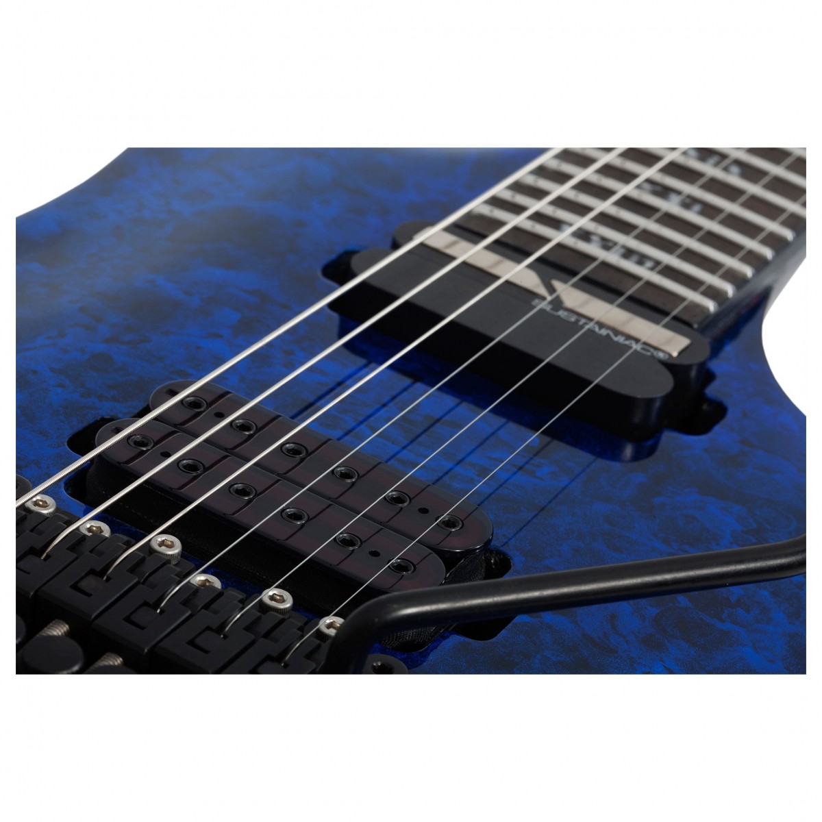Specifikationer Produktkod: SCH-GTR-1309 Kropp Kroppsmaterial: Träskask Toppkontur: Välvd topp Konstruktion: Limmad hals med Ultra-Access Bindning: Svart 1-skiktad Stall: Floyd Rose 1500-Series Hals och greppbräda Halstyp: Lönn / Padauk flerskiktad med kolfiberförstärkningsstänger Greppbräda: I ebenholts Inlägg: Romerska siffror Sidoprickar: Luminlay Glow In The Dark Skala: 648 mm Halsform: Thin C Tjocklek vid första bandet: 20 mm Tjocklek vid 12:e bandet: 22 mm Greppbrädans radie: 12 ”-16” compound-profil Sadel: Floyd Rose 1500 Series Sadelbredd : 413 mm Dragstång: 2-vägs justerbar stång med 4 mm insexsadel Antal band: 24 Bandstorlek: X-Jumbo Hardware och elektronik Stall-pickup: Schecter USA Apocalypse-VI Hals-pickup: Sustainiac Kontroller: Volym Ton 2-vägs On-Off Sustainiac Switch 3-Way Sustainiac Mode Switch (Fundamental-Mix-Harmonic) Pickup-väljare: 3-vägs omkopplare Batterifack: 9-volts klämbart batterifack Kontrollrattar: Hipshot O-ring Strängar: Ernie Ball Regular Slinky # 2221 (.010-.046) Hårdvara: Satin Black