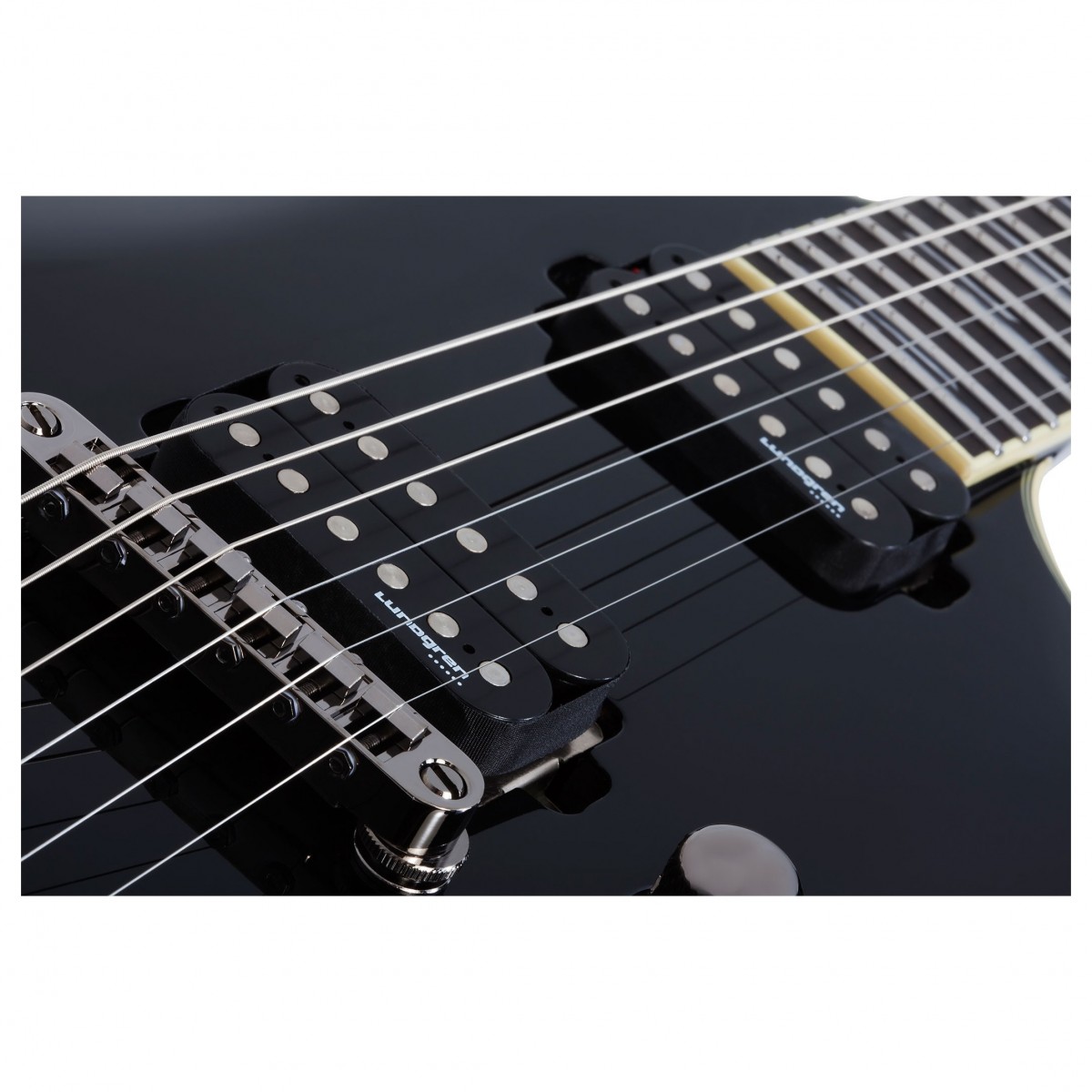 Specifikationer Produktkod: SCH-GTR-2560 Kropp Kroppsmaterial: Mahogni Finish: Gloss Black Hals och greppbräda Halstyp: Mahogni 3-delad med kolfiber förstärkningsstavar Halsfinish: Satin Halsprofil: Thin C Greppbräda: I ebenholts Antal band: 24 Bandstorlek: X-Jumbo Inlägg: Linjer med pärlemor Hårdvara och elektronik Stall-pickup: Lundgren M6 Hals Pickup : Lundgren M6 Stall: TonePros T3BT TOM med string-through kropp Hårdvara: Svart förkromad