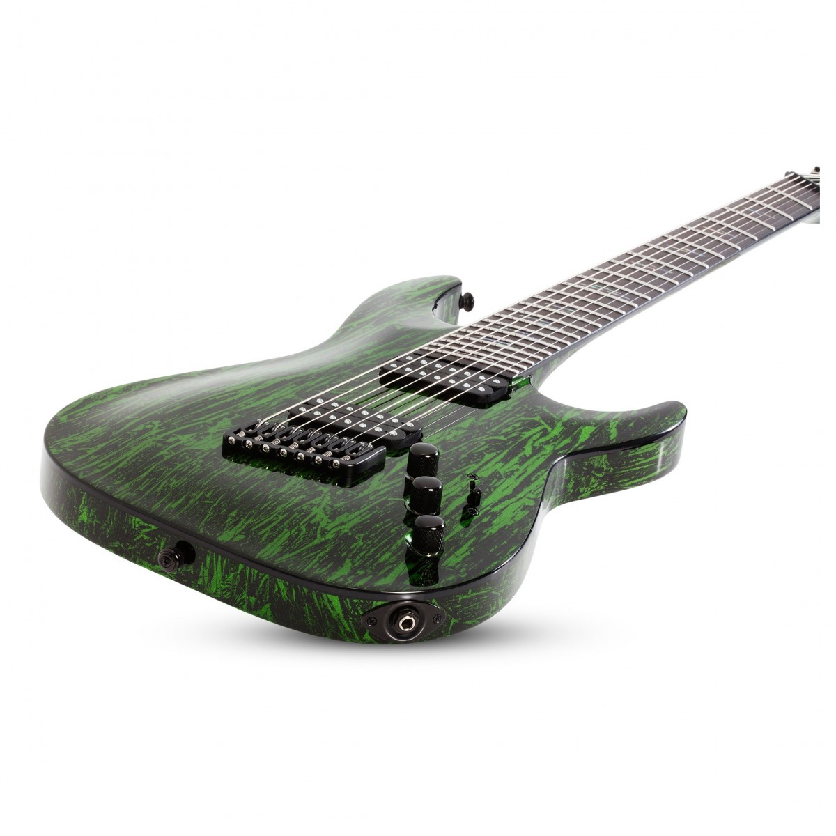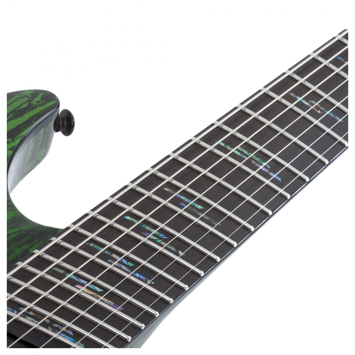 Spela lågt. Utöka ditt tonomfång för att få de allra bästa råa riff. Schecter C-7 MS Silver Mountain har det allra senaste inom flerskalig teknik för att erbjuda stormlika baritononer med noggrann och stabil stämning. De revolutionerande ”utspridda banden” tillåter också maximal komfort när du sträcker din hand över de sju strängarna. Den blixtsnabbt spelade greppbrädan i ebenholts och Thin C-formade mahognihalsen stöder detta. Halsen är kolfiberförstärkt för maximal stämningsstabilitet under alla potentiella fuktighetsförhållanden. Få en ernorm metal-ton tack vare Schecters Sonic Seducer humbuckers som ger dundrande toner. Använd coil-tap-omkopplaren för smidigt snabbt single coil-solospel och kristallklara cleans. De fungerar perfekt samman med Schecter Silver Mountains limmade halskonstruktion och string-through-kroppen för nästan oändlig sustain. Med en enorm uteffekt och Schecter s Ultra Access halsfog är C-7 MS Silver Mountain som en riktig dyrk och murbräcka bara helt i metall.