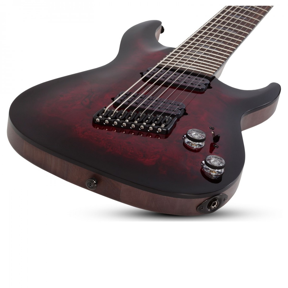 Schecter Omen Elite-8 MS har gjorts mästerligt för att leverera vilda decimerande framträdanden som utan tvekan kommer att få din publik att vilja ha mer. Med två Schecter Diamond Heretic humbuckers är ljudet oöverträffat fullt av eldig kraft och definition. Förbered dig på brännheta riff och skarpa klara toppar. Varje spelning kommer att vara en att komma ihåg speciellt när du har robust hårdvara och enkla strängbyten på din sida. Det räcker inte med ett otroligt hårt ljud du måste ha en enkel spelbarhet för att matcha. Du vill inte ha något som håller dig tillbaka varför den släta lättspelade lönnhalsen har förstärkts med kolfiberstavar. Denna hållbara förstärkning lovar oslagbar styrka. Och när du utforskar den flerskaliga greppbrädan i rosenträ tackar dina fingrar säkerligen den silkeslena ytan på 24 X-jumbo-fräsar.