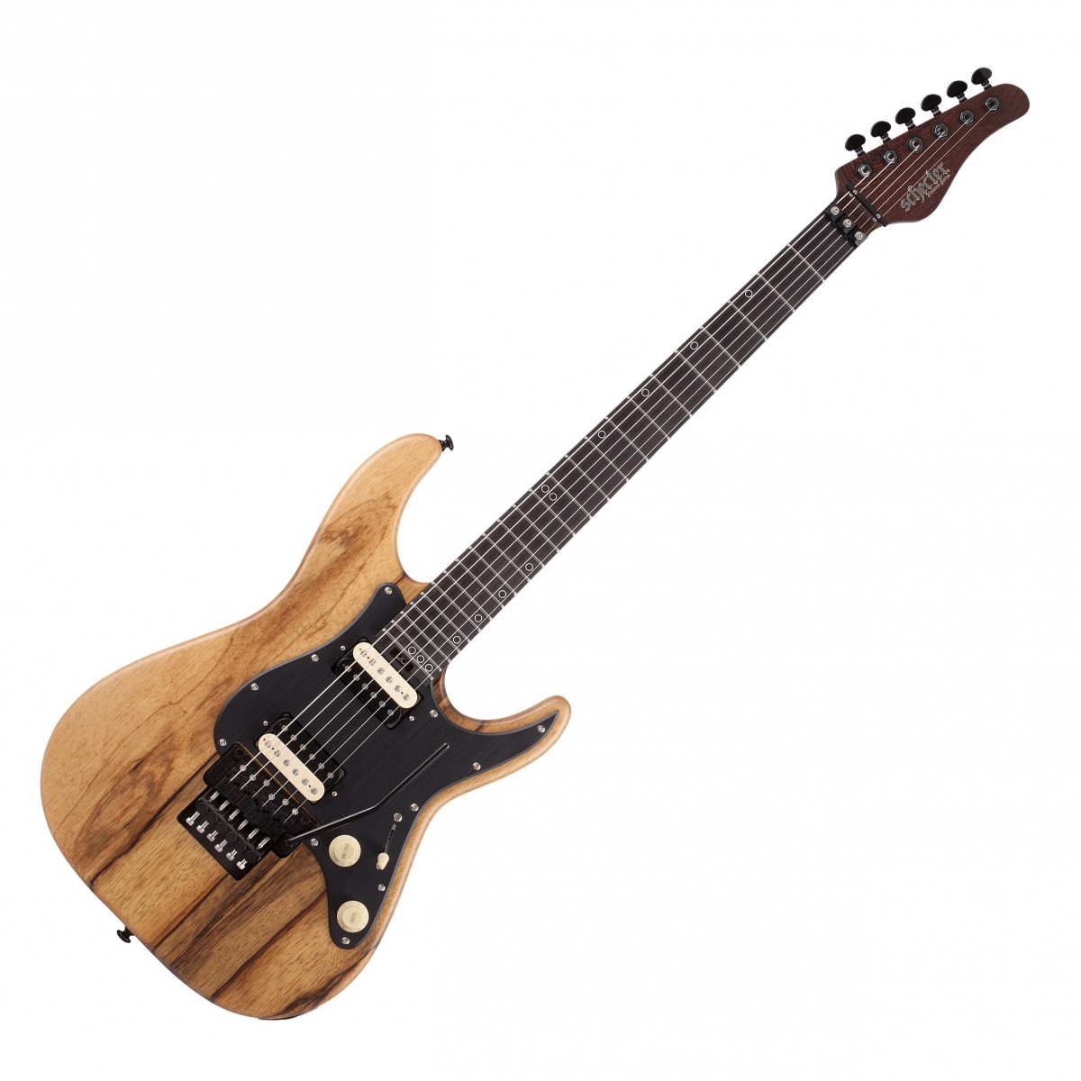 Specifikationer Modellnamn: Schecter Sun Valley Super Shredder Exotic Black Limba Kod: SCH-GTR-1265 Kropp Kroppsmaterial: Svart Limba Kroppsform: Super Shredder Hals och Greppbräda Halsmaterial: Wenge Greppbrädans material: Ebenholts Greppbrädans inlägg: Aluminium Offset / Omvända cirklar Antal band: 24 extra jumbo Skallängd: 255 ” Hårdvara och elektronik Sadelbredd: 1625 ” Sadel: Floyd Rose låsande Stall / Stränghållare: Floyd Rose 1500 Series Locking Tremolo Stämskruvar: Grover Rotomatic 18: 1 Hals-pickup: Schecter USA Pasadena Stall-pickup: Schecter USA Sunset Strip Kontrollrattar: Volym / Ton / 5-vägs omkopplare Diverse egenskaper Strängar: Ernie Ball Hybrid Slinky # 2222 (.009-.046)