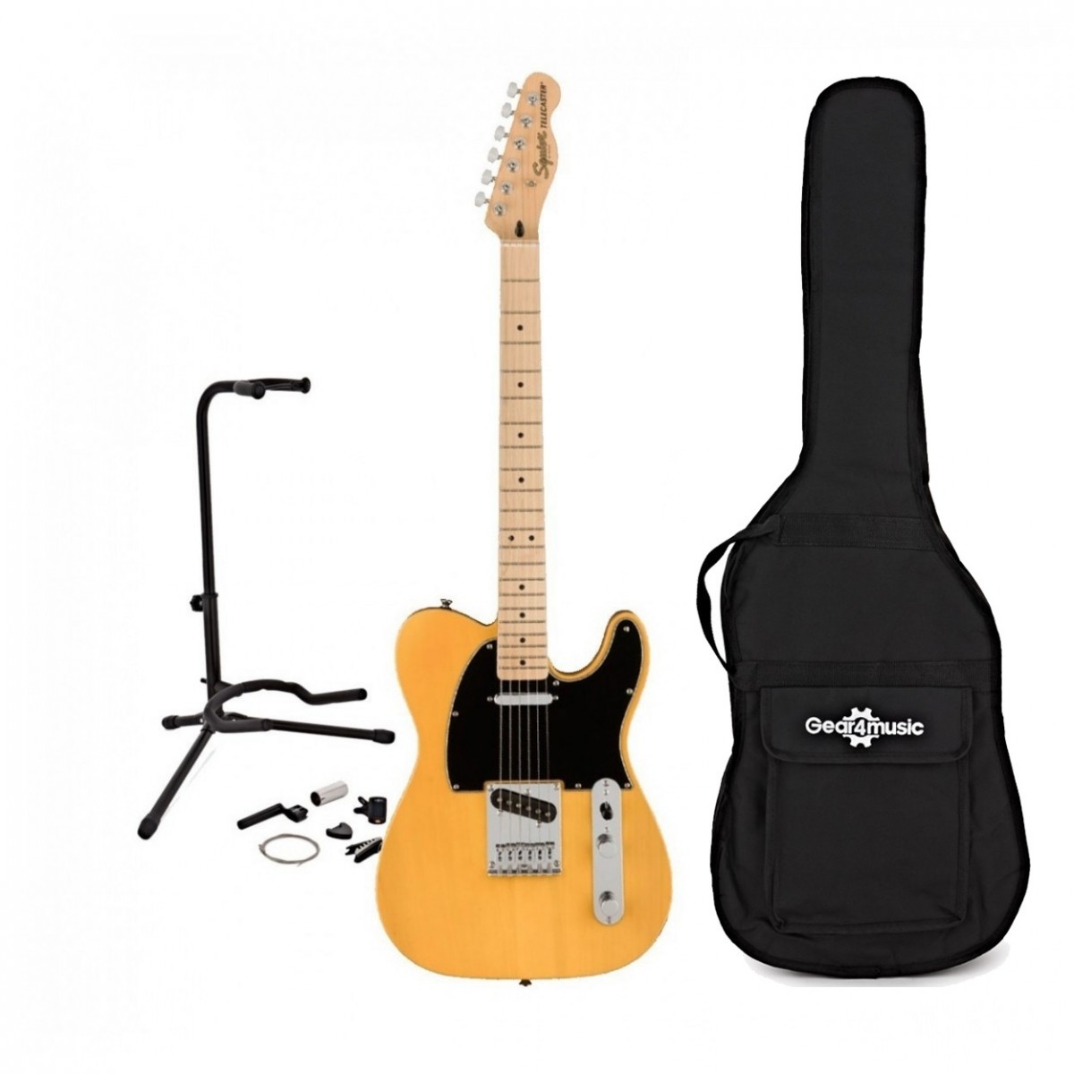 Specifikationer Produkt: Squier Affinity Telecaster MN Butterscotch Blonde & tillbehörspack Kod: 0378203550-GTRCOMPPACK-B Serie: Affinity Kropp Kropp: Poppel Form: Telecaster Konstruktion: Påskruvad Finish: Butterscotch Blonde – Blank polyuretan Hals & greppbräda Hals: Lönn Profil: C Skallängd: 255 tum (648 mm) Greppbräda: Lönn Radie: 95 tum (241 mm) Band: 21 Medium Jumbo Inlägg: Svarta prickar Sadel: Syntetben Sadelbredd: 42 mm Elektronik & hårdvara Stallpickup: Keramisk Single-Coil Tele Halspickup: Keramisk Single-Coil Tele Kontroller: Master Volume Master Tone Växling: 3-vägsväljare Position 1: Stallpickup Position 2: Stall- & Halspickuper Position 3: Halspickup Stämskruvar: Förseglad pressgjuten med delade axlar Kontrollknappar: Räfflad platt topp Plektrumskydd: 3-lagers svart Stall: 6-sadel topplastkropp Hårdvara: Krom Strängar: Fender USA 250L NPS (.009 – .042 mått) Fodral medföljer: SubZero Value elgitarrväska Tillbehör: Tillbehörspaket för elgitarr från Gear4music