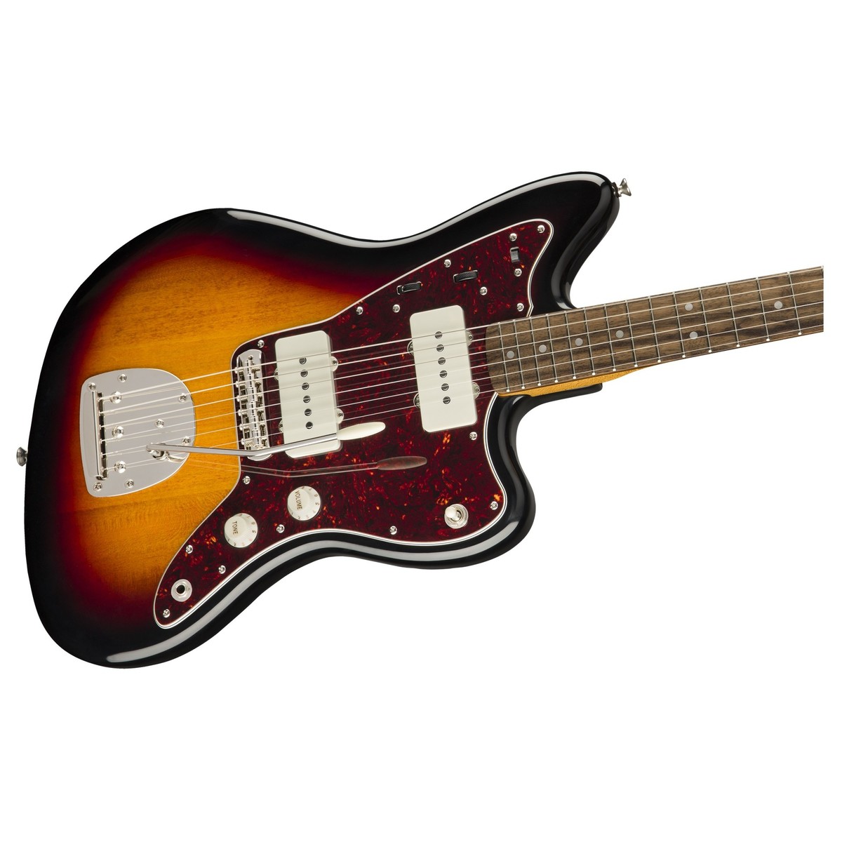 En slående hyllning till den ikoniska Fender favorit Jazzmaster-ton. Squire Classic Vibe 60s Jazzmaster har dubbla Fender-designed alnico enkelspole pickuper som ger nyanser och bett som Fender Jazzmaster gitarrdesign är känd för. Den smala och bekväma C-formade halsprofilen på Squire Classic Vibe 60s Jazzmaster som är idealisk för de som spelar med tummen på baksidan eller sidan av halsen vilket ger full komfort och spelförmåga. Squire Classic Vibe 60s Jazzmaster har ett tremolosystem i vintageformad stil som är perfekt för uttrycksfulla strängböjningseffekter lämpliga i olika musikstilar. Från en vintage-färgton glans hals finish för ett mycket önskvärt åldern utseende till 1960-talet inspirerade dubbdocka markeringar Squire Classic Vibe 60 Jazzmaster ger fantastiska gamla skolan estetik.