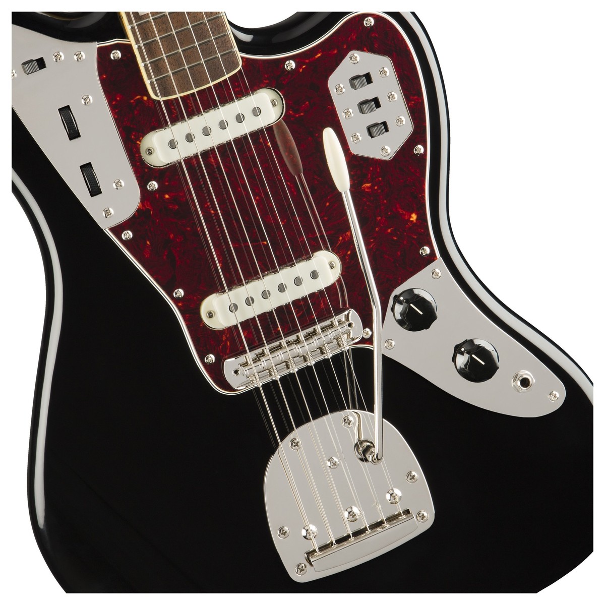 Tack vare sin moderna känsla och klart ljudande Duncan Design ™ -mickar och den moderna radien på gitarrens greppbräda skapar Squire Classic Vibe 70s Jaguar en briljant klar ton samtidigt som retro-looken upprätthålls. Squier Classic Vibe 70s Jaguar är utrustad med dubbla Duncan Designed ™ JG-101 enkelspoliga mickar och erbjuder samma fina nyanser och tajta ljud som Jaguar gitarrdesignen är känd för. Dessa pickuper är anslutna till en mångsidig uppsättning elektronik som ger tillgång till separata lead- och rytmkretsar som kan ändras enligt din egen smak med on / off- och tonkretsomkopplaren. Classic Vibe 70s Jaguar har ett vintage-stall med ett icke-låsande flytande stall vilket ger smidiga ljud under string bending. Halsen på Squier Classic Vibe 70 Jaguar har en vintage-tonad högblank finish för ett önskvärt åldrat utseende. Den nyanserade färgningen på halsen tillsammans med den vackra skinande svarta kroppen ger 70-tals Jaguar-gitarren en fantastisk estetik.