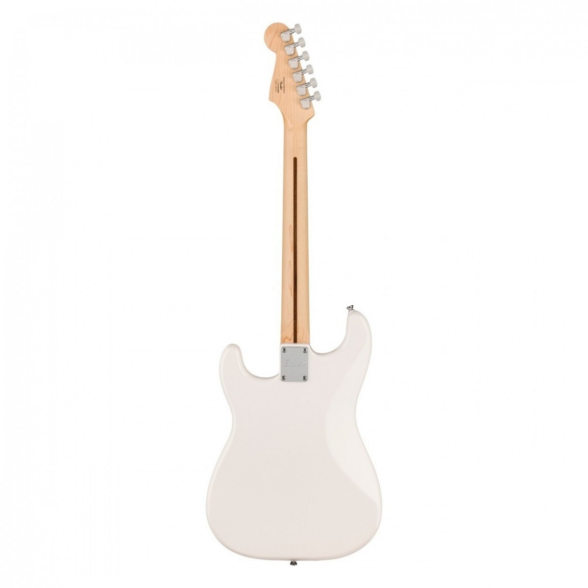 Specifikationer Produktkod: 0373252580 Kropp och stall Material: Poppel Form: Stratocaster Ytbehandling: Glansig polyuretan Färg: Stall: 6-sadlig toppbelastad hardtail med blocksadlar Hals och greppbräda Halsmaterial: Lönn Halsform: C Halsfinish: Sidenmatt Urethane Konstruktion av hals: 4-bult Squier Material i greppbräda: Lönn Greppbrädans radie: 95″ Banden: 21 Narrow Tall Inläggningar Black Dot Sadel: Syntetiskt ben Sadelbredd: 42mm Hårdvara och elektronik Stallpickup: Keramisk enkelspolig Mellanpickup: Keramisk enkelspolig Halspickup: Keramisk enkelspolig Pickupkonfiguration: SSS Reglage: Master Volume Tone 1 (hals/mellanregister) Tone 2 (stall) 5-vägs pickupomkopplare Kontrollrattar: Vit plast Hårdvara: Krom Plektrumskydd: 1 skikt vit Stämskruvar: Gjutna och förseglade Dragstång: Huvudjustering Strängar: Nickelpläterat stål (.009-.042 mått)