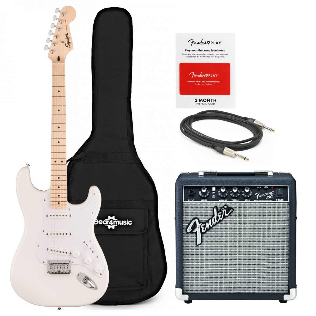 Squier Sonic Stratocaster MN Pack med gratis 3 månaders Fender Play är en elgitarr med Strats klassiska ljudkvalitet kombinerad med Fenders praktiska lektionstjänst online – perfekt för nybörjare. Dessutom kan du skräddarsy detta paket för att få en perfekt uppsättning direkt från start. Spelbarheten känns lyxig tack vare en C-formad halsprofil. Öva och spela i timmar utan att oroa dig för att få kramp i handen. Formen ligger naturligt i handflatan och ger en perfekt bas för att glida fram över greppbrädan. Experimentera med din ton utan problem. Den här modellen har volym- och tonkontroller som gör att du kan finjustera och forma ditt sound för en stil som passar dig. Original Strat är en musiklegend som har använts av Jimi Hendrix The Who Pink Floyd och The Beatles för att bara nämna några. Nu är det din tur att glänsa på scenen…