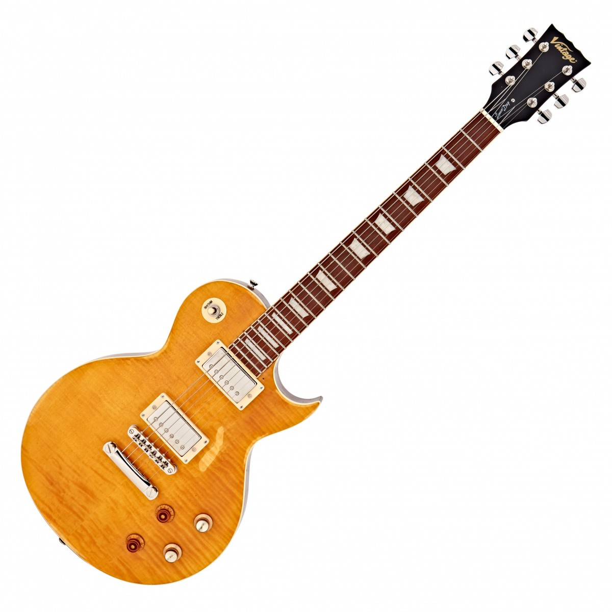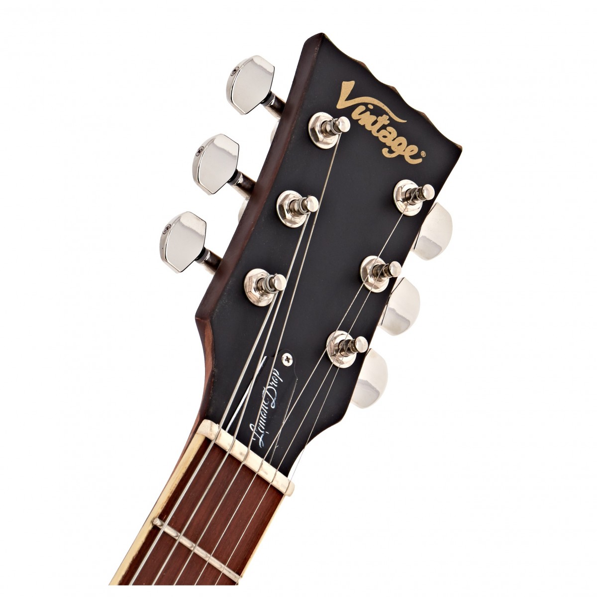 En riktig arbetshäst. Vintage V100MR- Icon gjordes för ett syfte: att skapa mördare-riff. Med ett par Wlkinson Double Coil WVC-mickar kan dess ton bara beskrivas som fett med mycket utdata för att driva varje ton genom mixen. En ”mjuk C” mahognyhals ger en perfekt komfort så att du får enastående spelbarhet. Och en Wilkinson Tune-O-Matic-bro säkerställer att din stämning förblir bunnsolid varje gång du tar upp denna gitarr. Men den riktiga cherry på kakan är priset – denna gitarr är en stjäl.