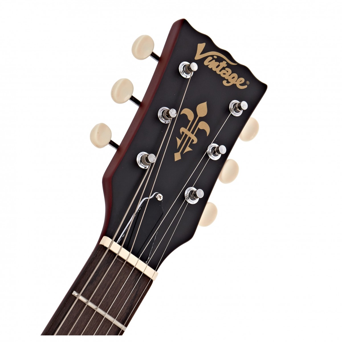 Mångsidighet och vintage stil kombinerat. Ibland är allt du behöver. Så Vintage V130 Reissued ger dig just det – en gammaldags elektrisk atmosfär med en vidsträckt ton. Det är beroendeframkallande. Från första anblicken kommer du att märka en iögonfallande Sidenmatt cherry finish med charm från förflutna dagar. Men det är inte allt. Med kraftfull vintage ton och enorm mångsidighet har du ljud som äter av äkthet och förmågan att spela nästan vad som helst ditt humör känns. Dessutom med en elegant bekväm dubbelskuren kropp är spelbarheten verkligen enkel med V130.